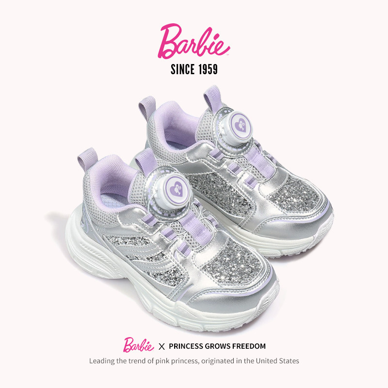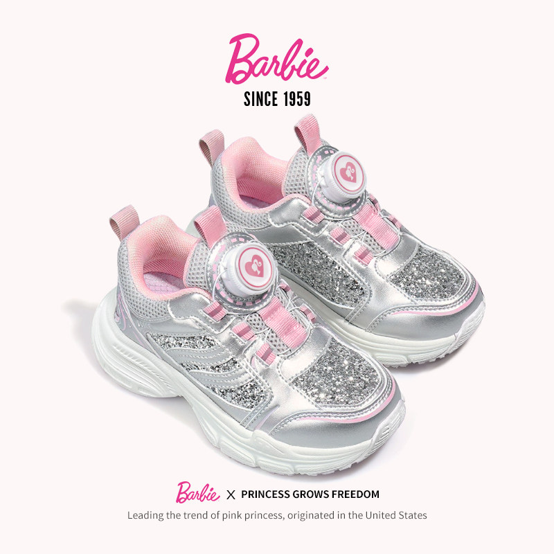 芭比童鞋女童运动鞋2026新款春季纽扣公主鞋休闲鞋子儿童跑步鞋女