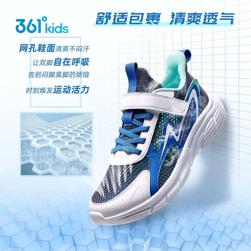 361度童鞋男女童跑鞋夏季小童透气大网孔儿童运动鞋魔术贴鞋子