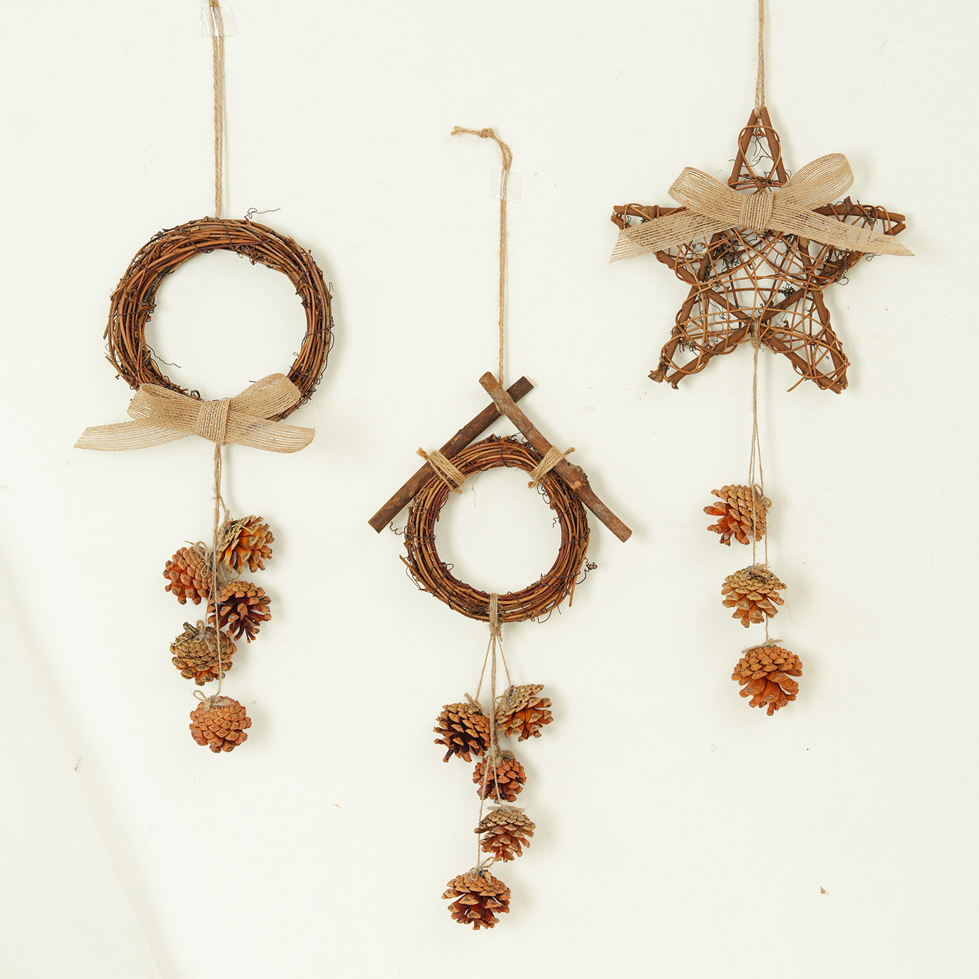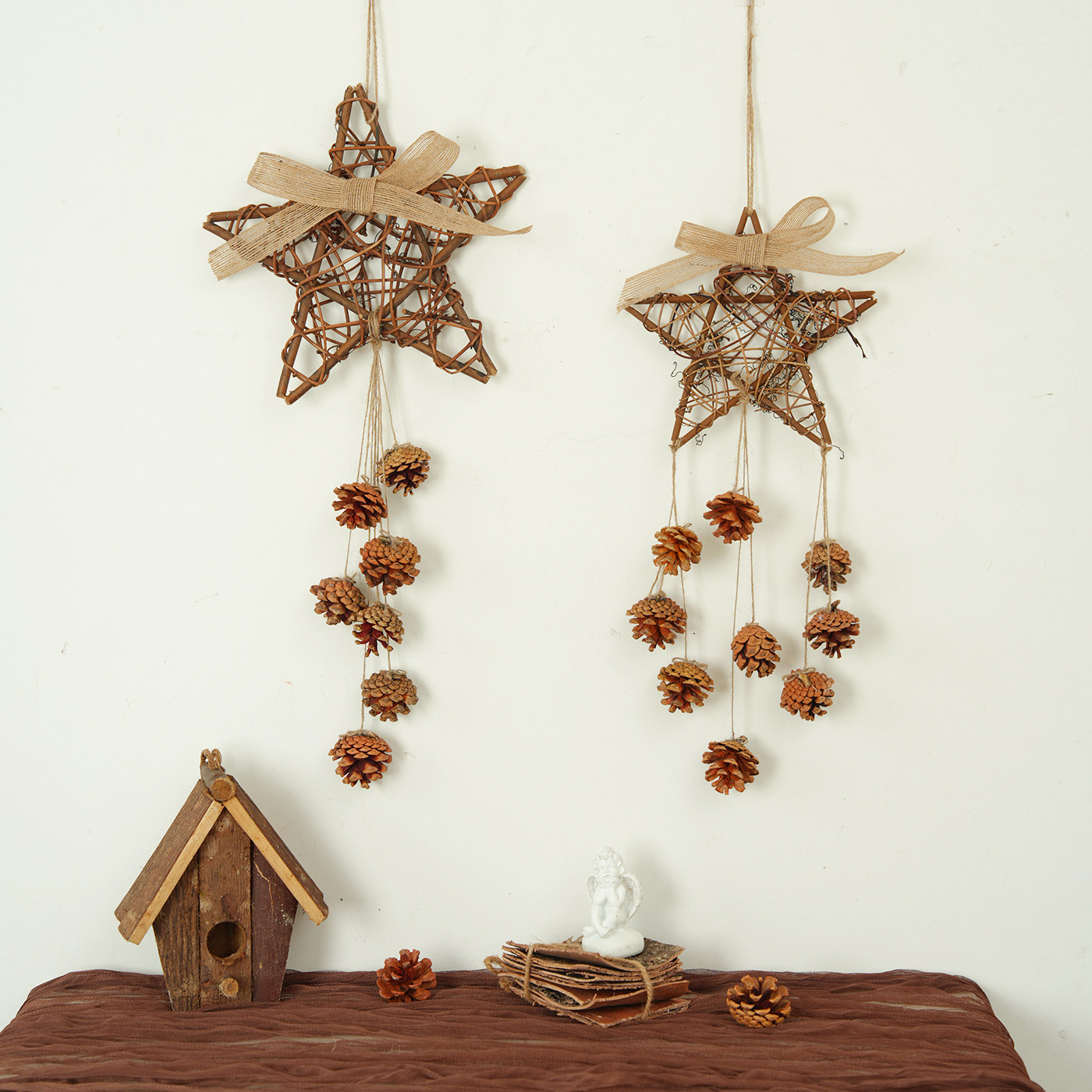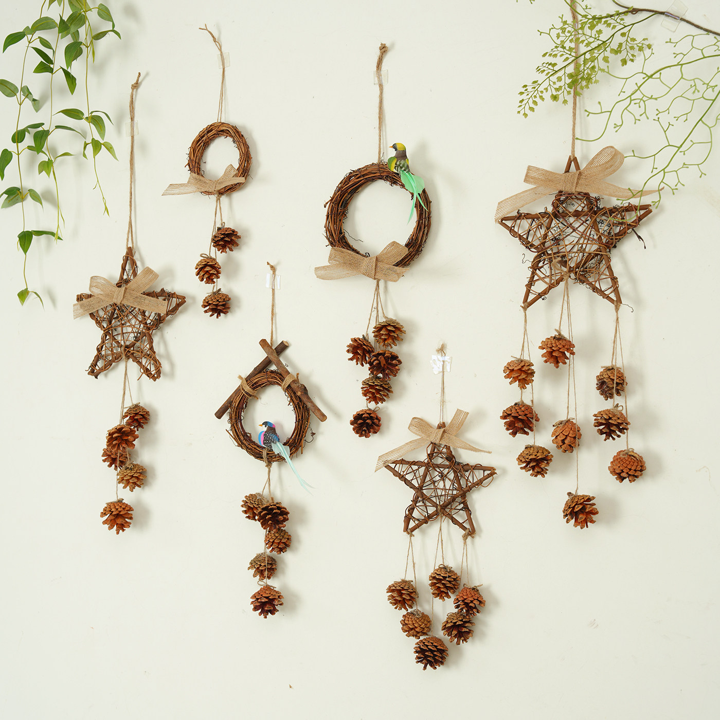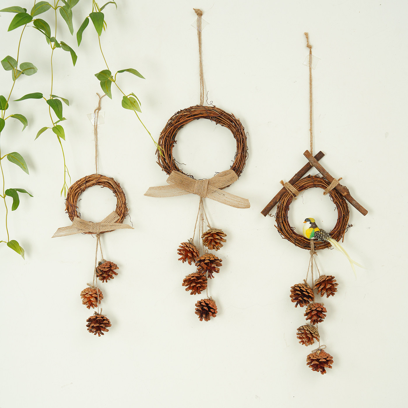 手工天然松果DIY墙面藤编装饰挂件创意幼儿园餐厅咖啡馆树枝挂饰