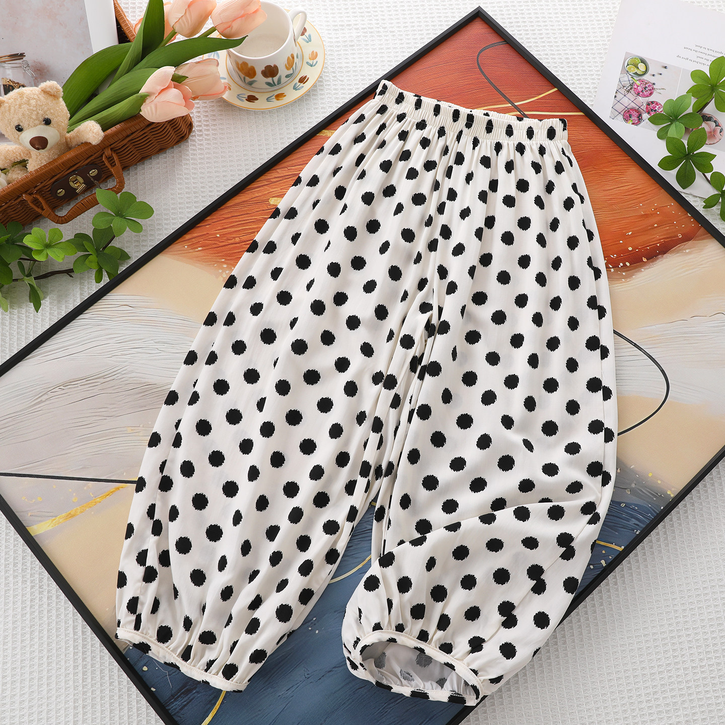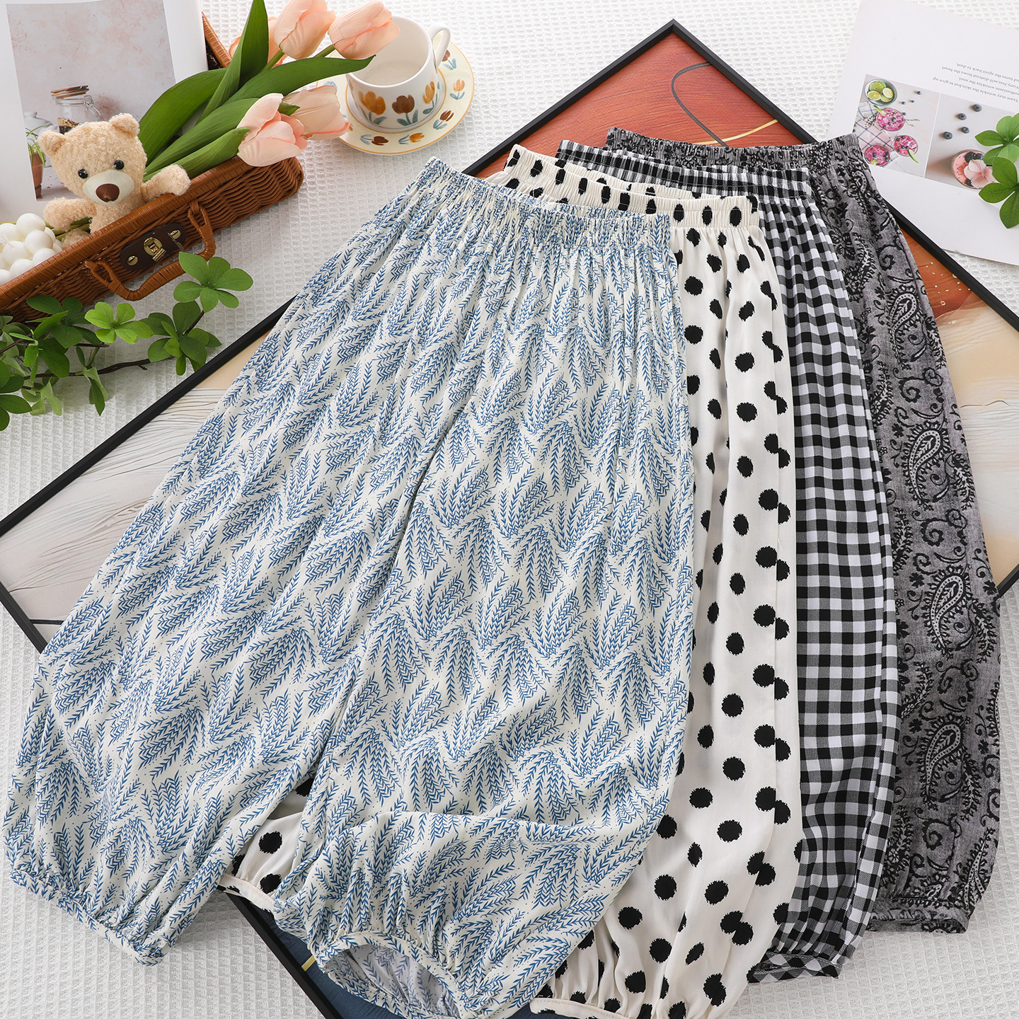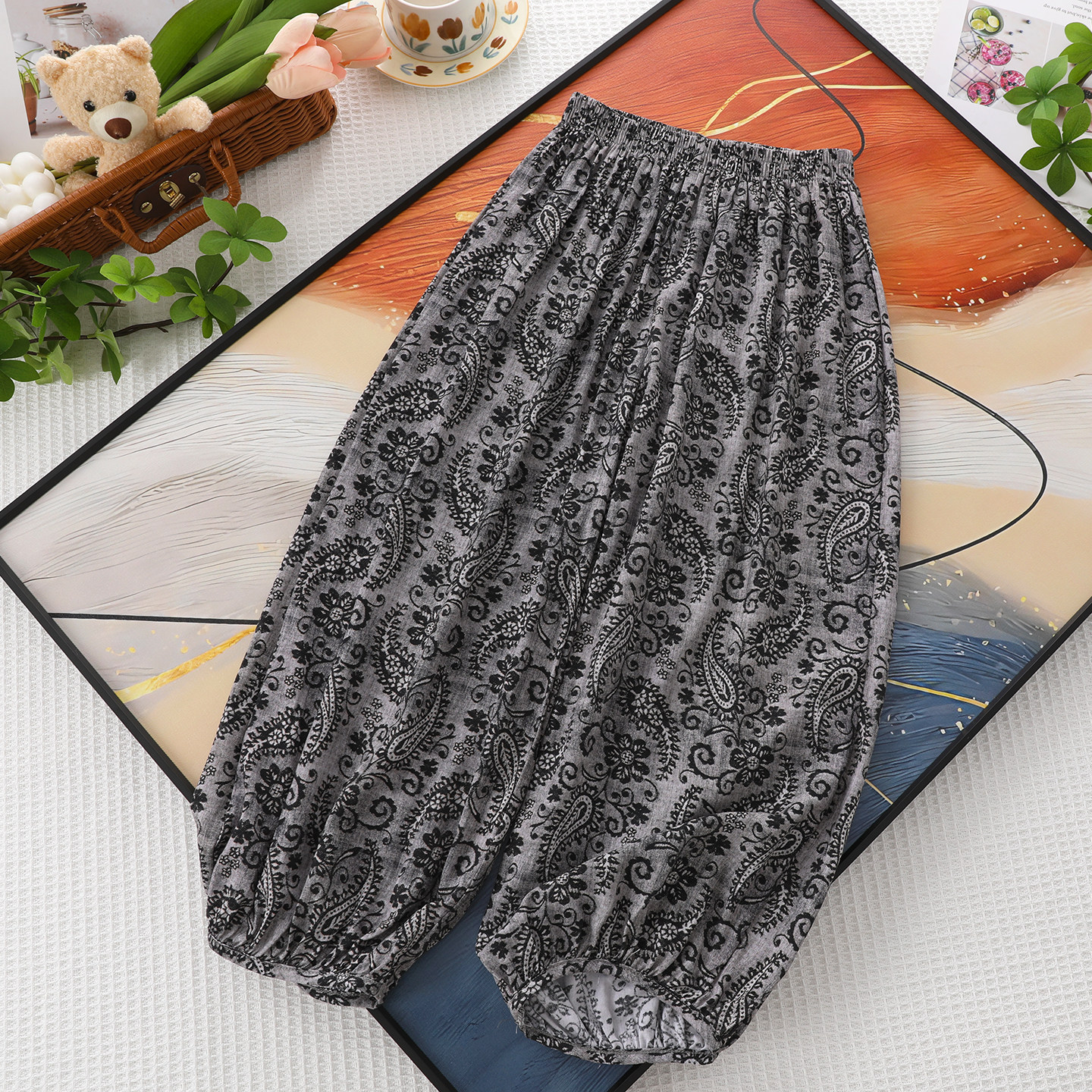 女童冰丝棉绸防蚊裤夏季薄款九分裤儿童人造棉空调裤宽松灯笼裤子