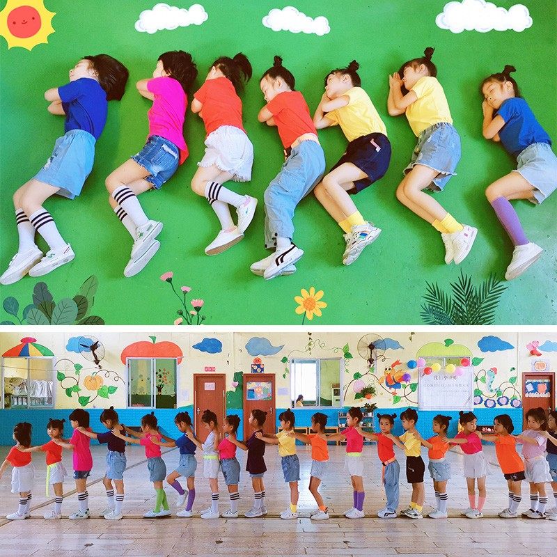六一儿童节糖果色纯棉短袖t恤彩色幼儿园小学生班服女亲子装定制