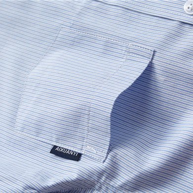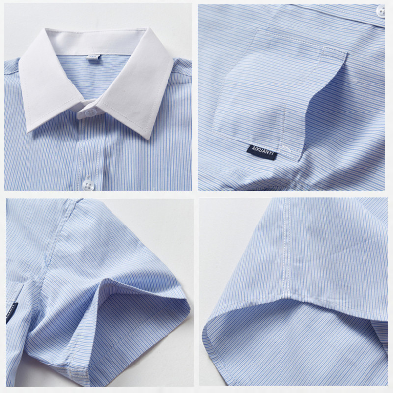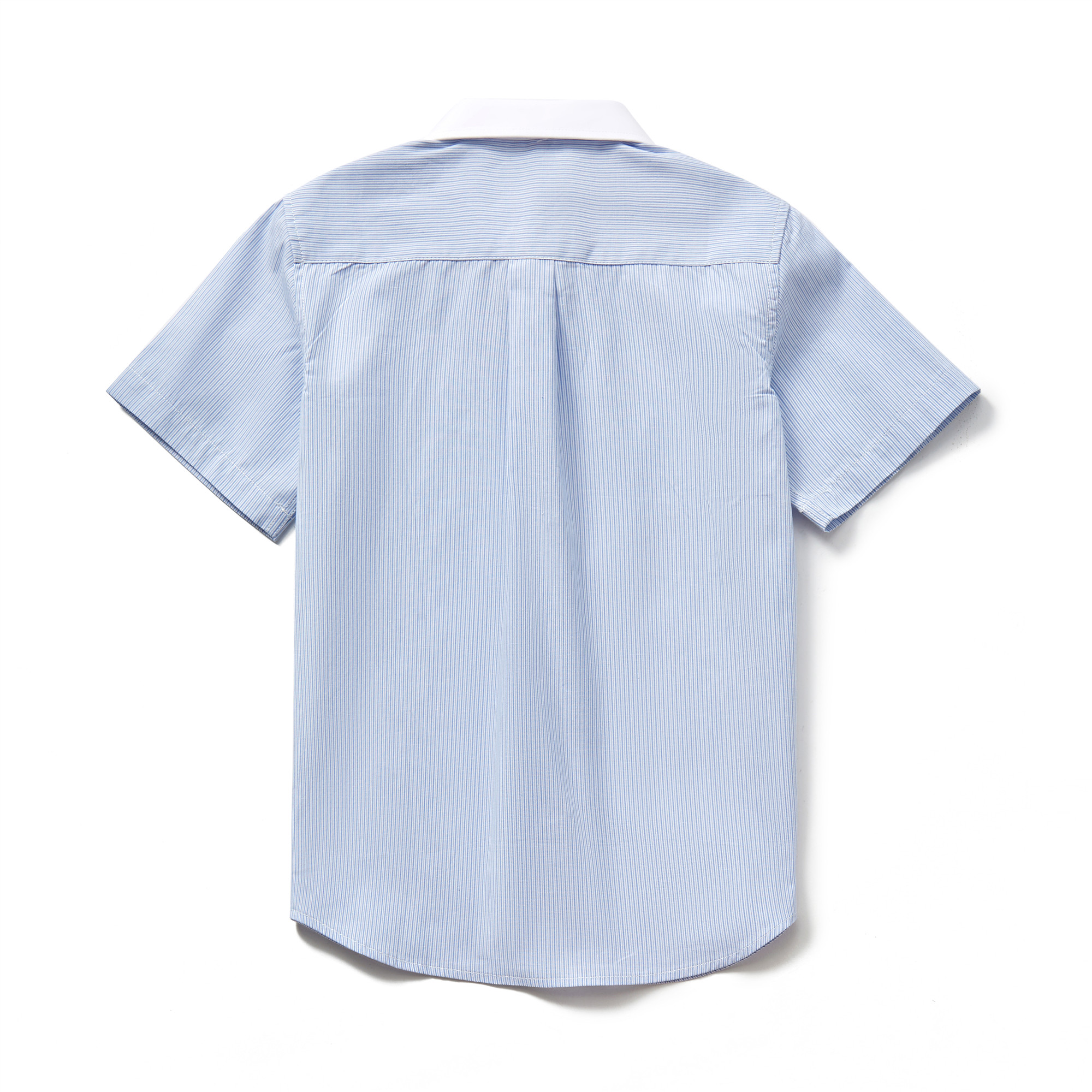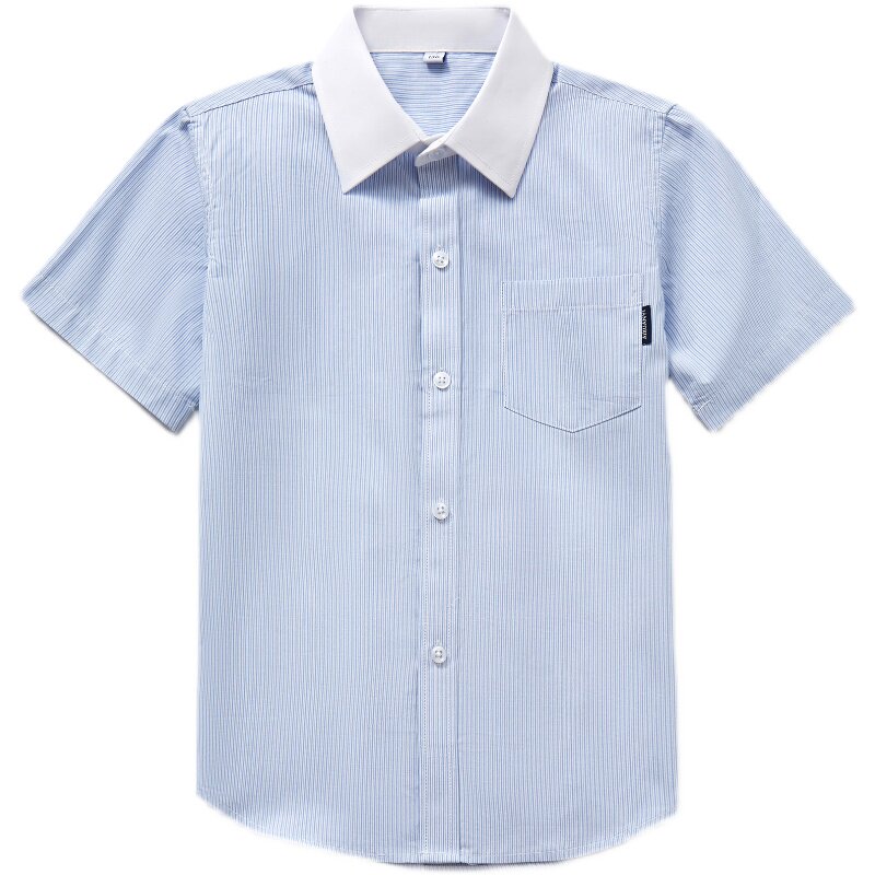 儿童纯棉短袖蓝色细条纹衬衫男童衬衣表演女童全棉中大童装外套上