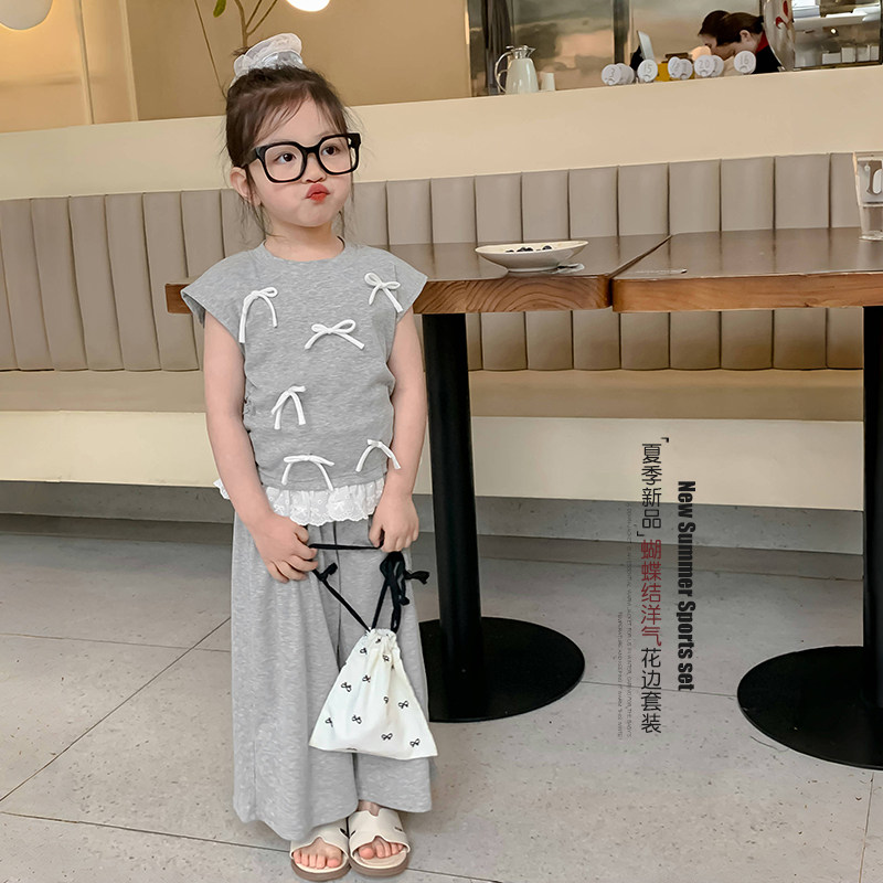 女童夏套装2026新款儿童夏季短袖T恤洋气时髦小女孩网红炸街套装