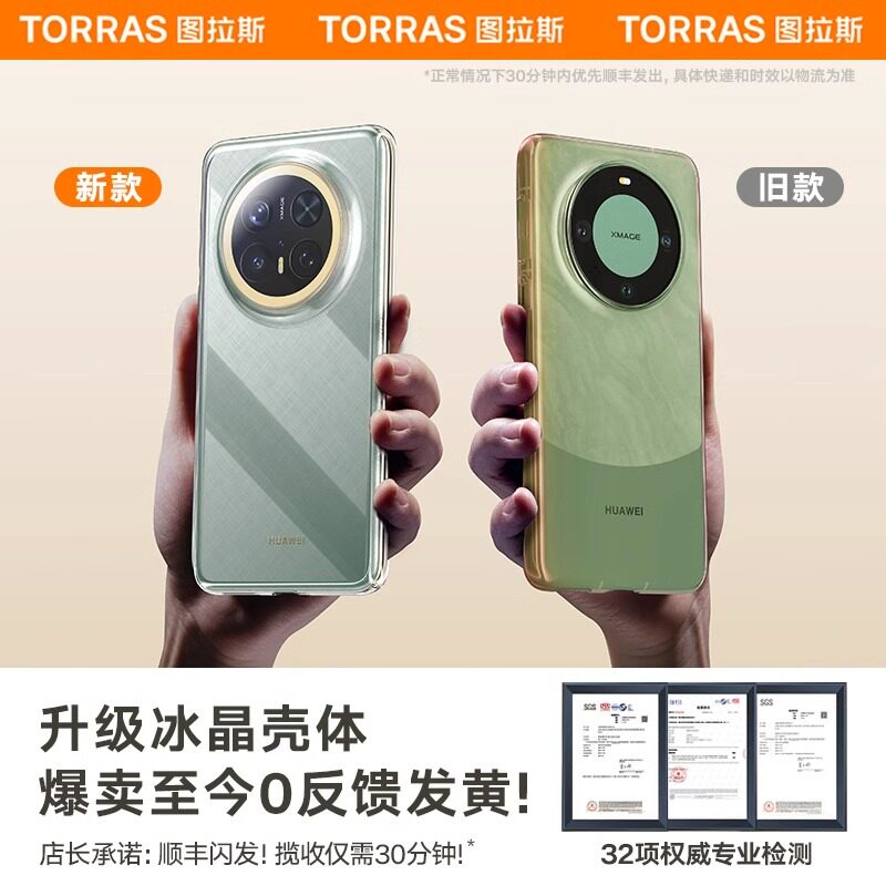 图拉斯适用华为Mate70Pro手机壳新款外壳Mete60Por+高级感超薄透明保护套散热mt60+防摔款后壳镜头优享