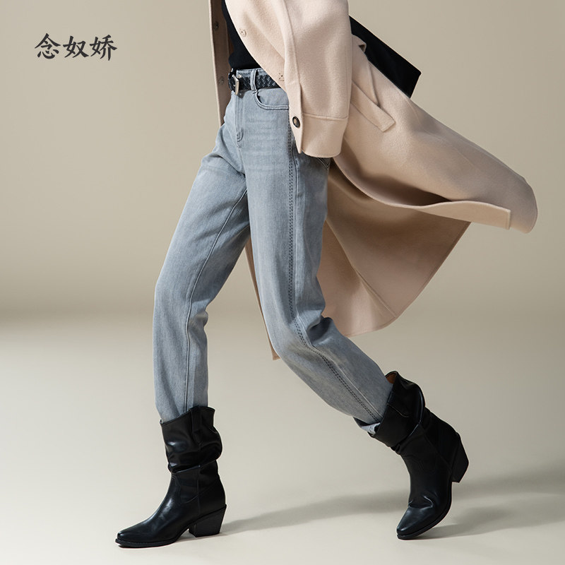 念奴娇萝卜牛仔裤女2025新款云雾灰裤子女款秋季版小个子牛仔裤