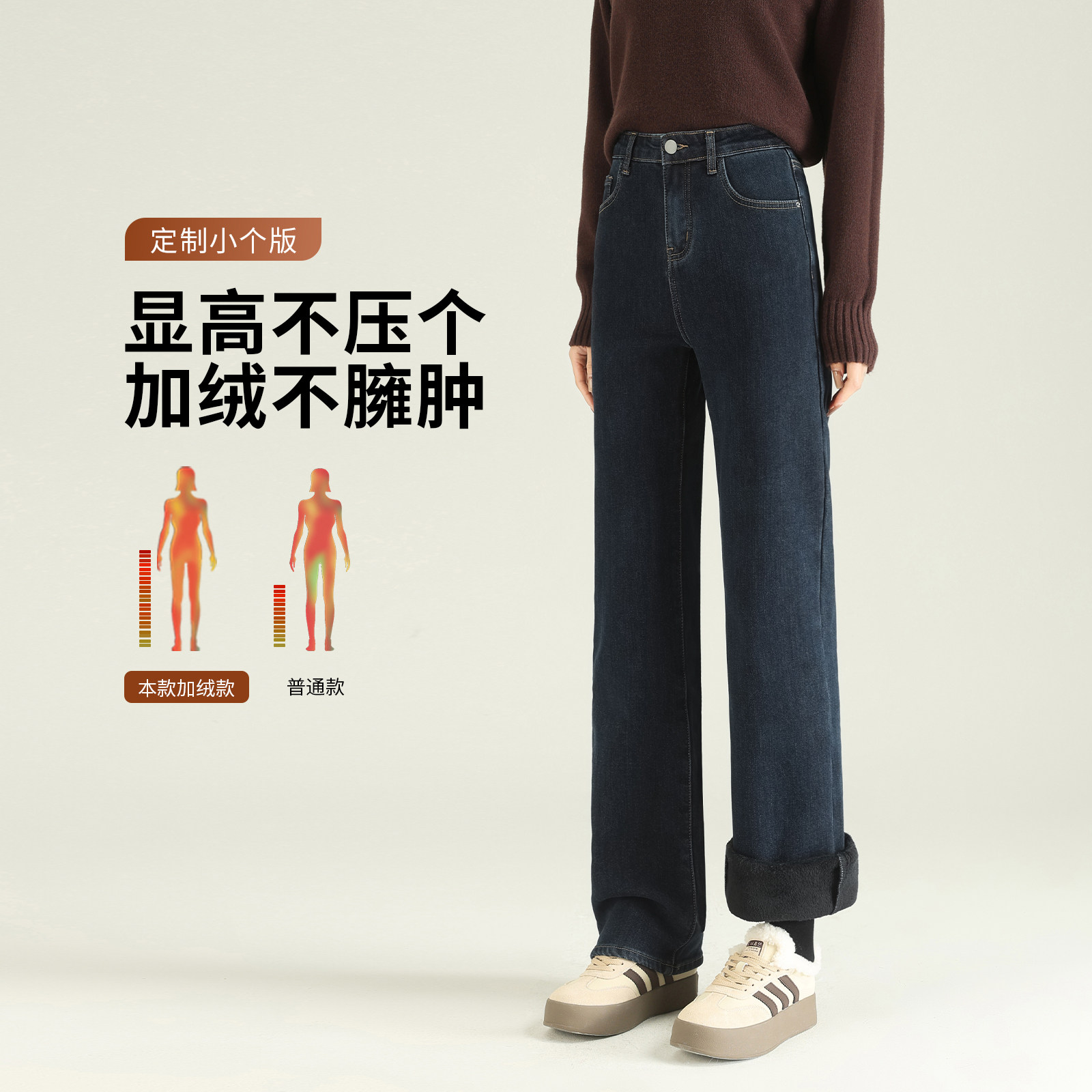 311线报网描述:裤子女款小个子 小个子加绒牛仔裤 显高显瘦