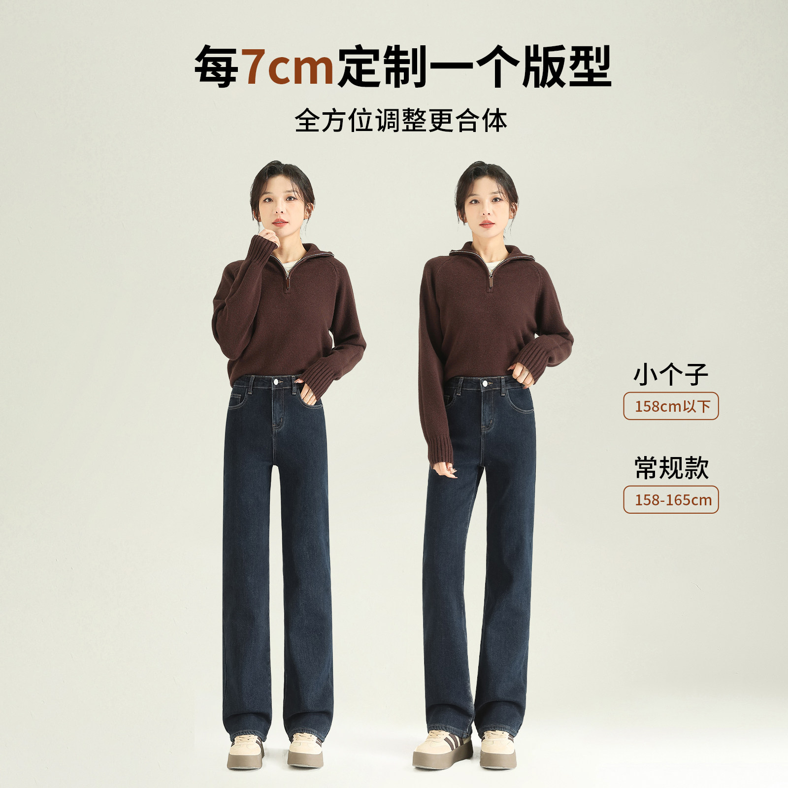小个子牛仔裤女2026新款爆款高腰阔腿女款冬加厚加绒窄版直筒裤子
