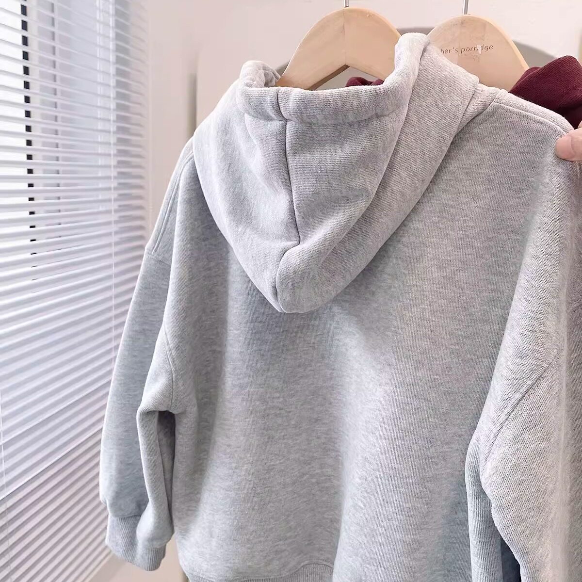 2026年冬季新款男童韩版字母加绒卫衣中大童连帽加厚上衣外套潮款