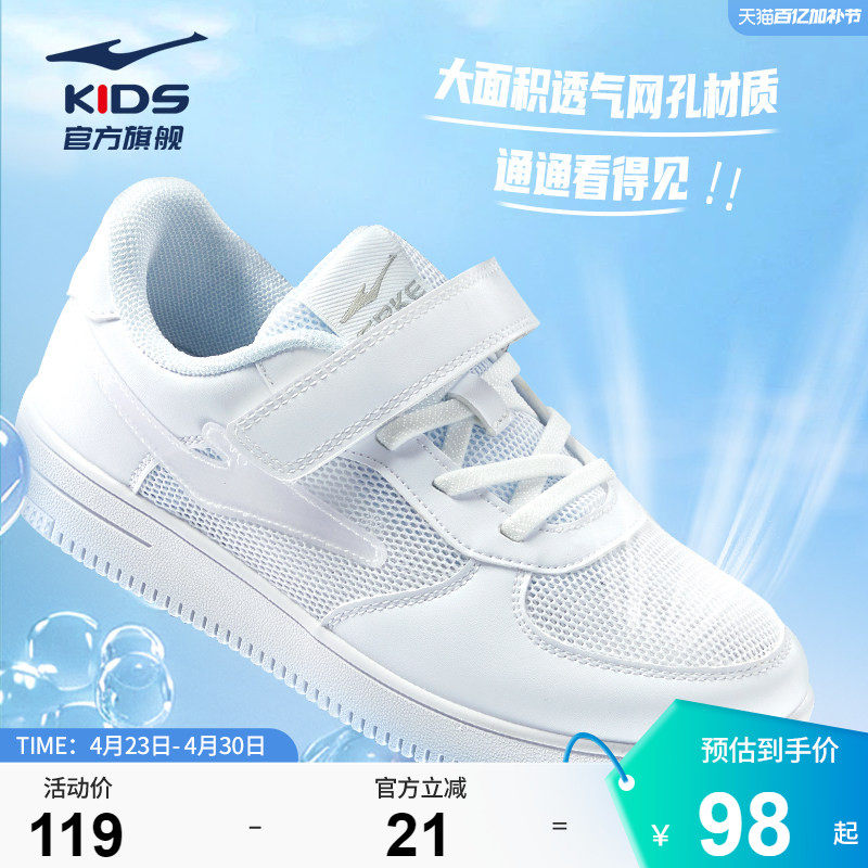 鸿星尔克童鞋儿童板鞋男童小白鞋新款夏季运动鞋透气女童白色鞋子