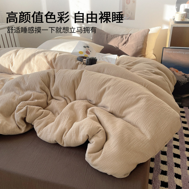 四件套床单被套罩泡泡纱宿舍床上三件套床品非全棉纯棉2026新款夏