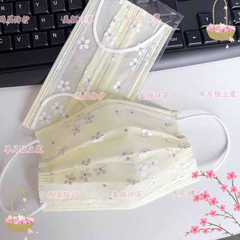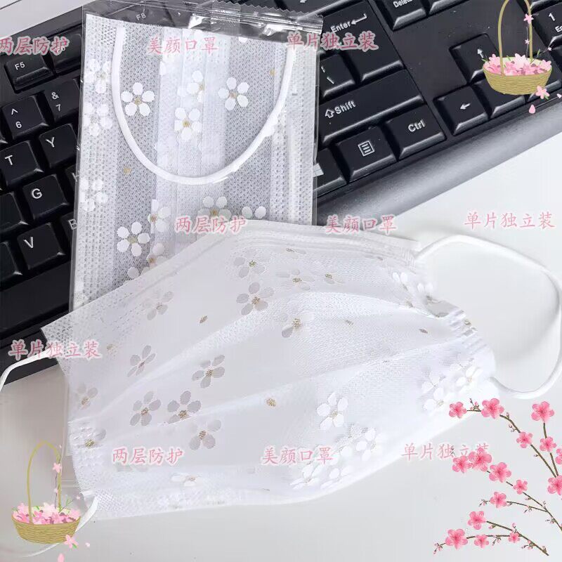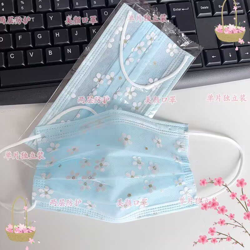 2025爆款夏季薄款2层透气一次性网纱成人女樱花口罩 防晒防尘口罩