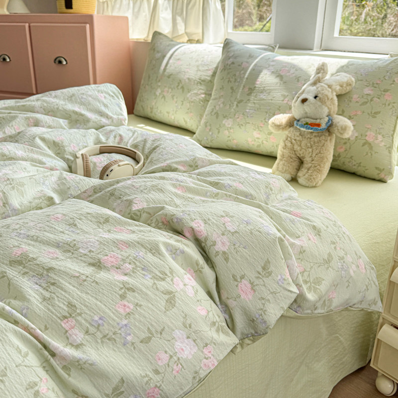 双层纱四件套2025新款夏季非全棉纯棉被套床单宿舍床上用品三件套