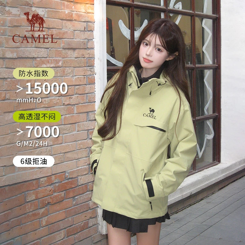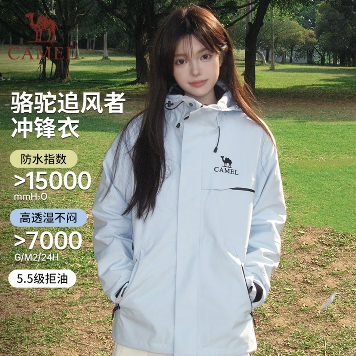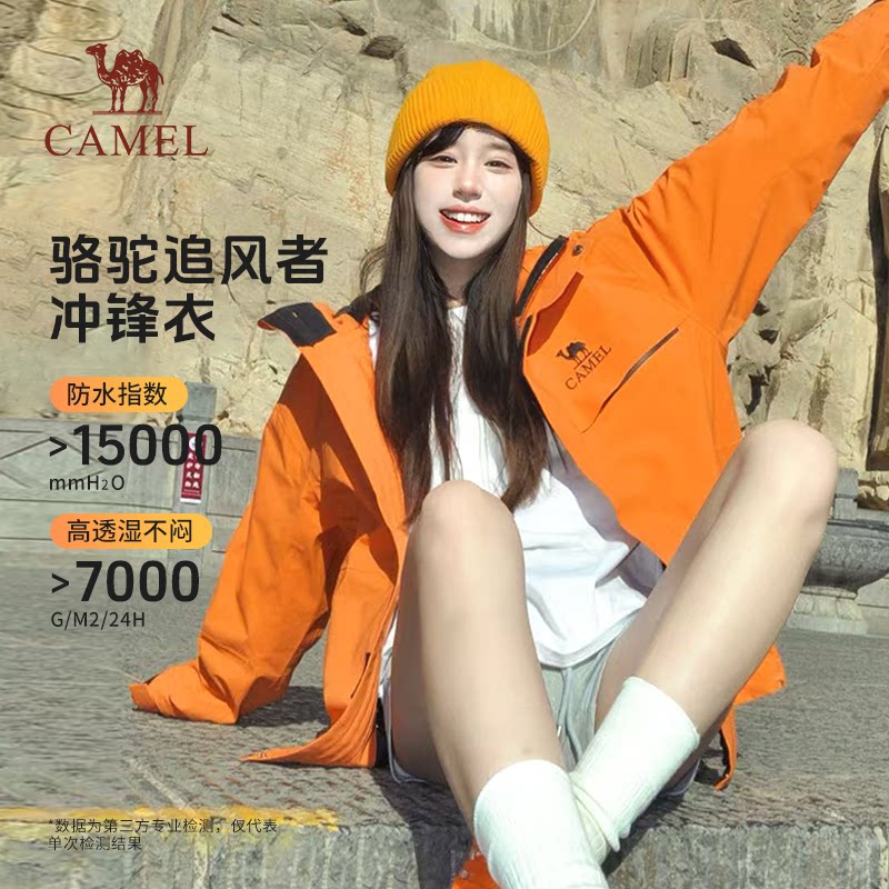 骆驼追风者三防橙色冲锋衣女三合一新款登山服防风防水夹克外套男