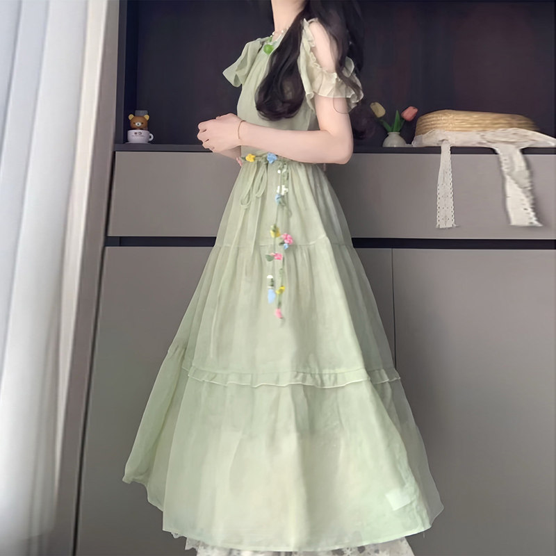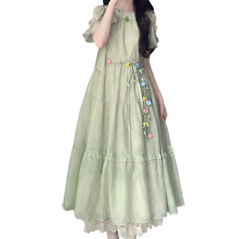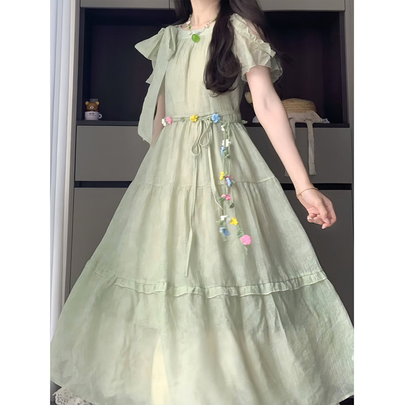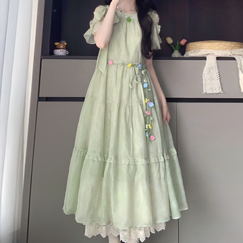 小清新蕾丝拼接连衣裙女2026夏季新款学生巨好看海边度假风长裙子