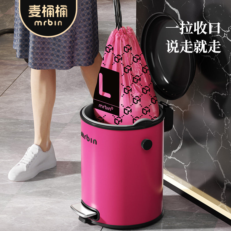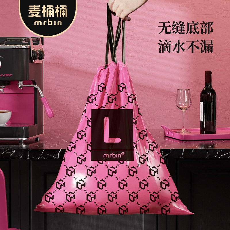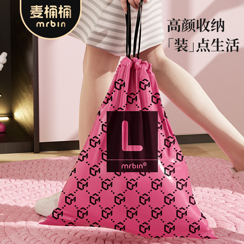 311线报网描述:创意粉黑时尚配色 家用免撕抽绳加厚拉拉袋