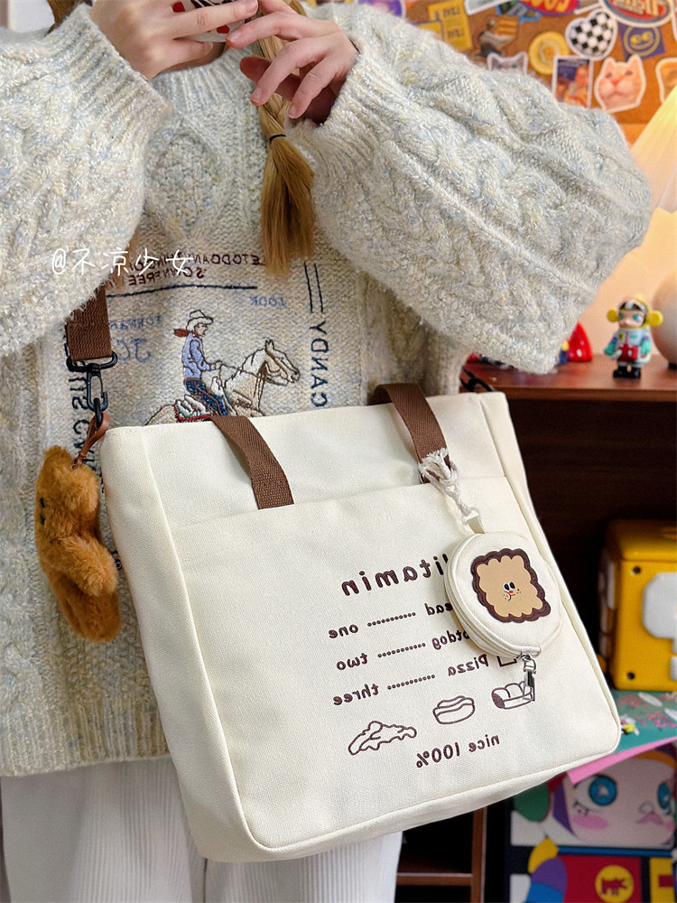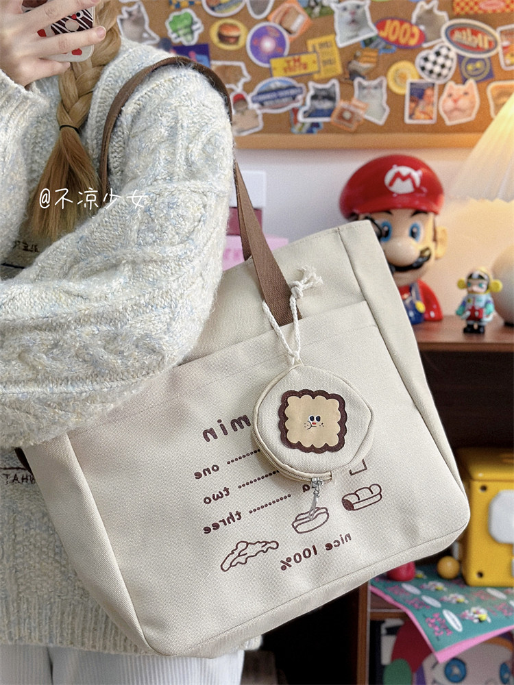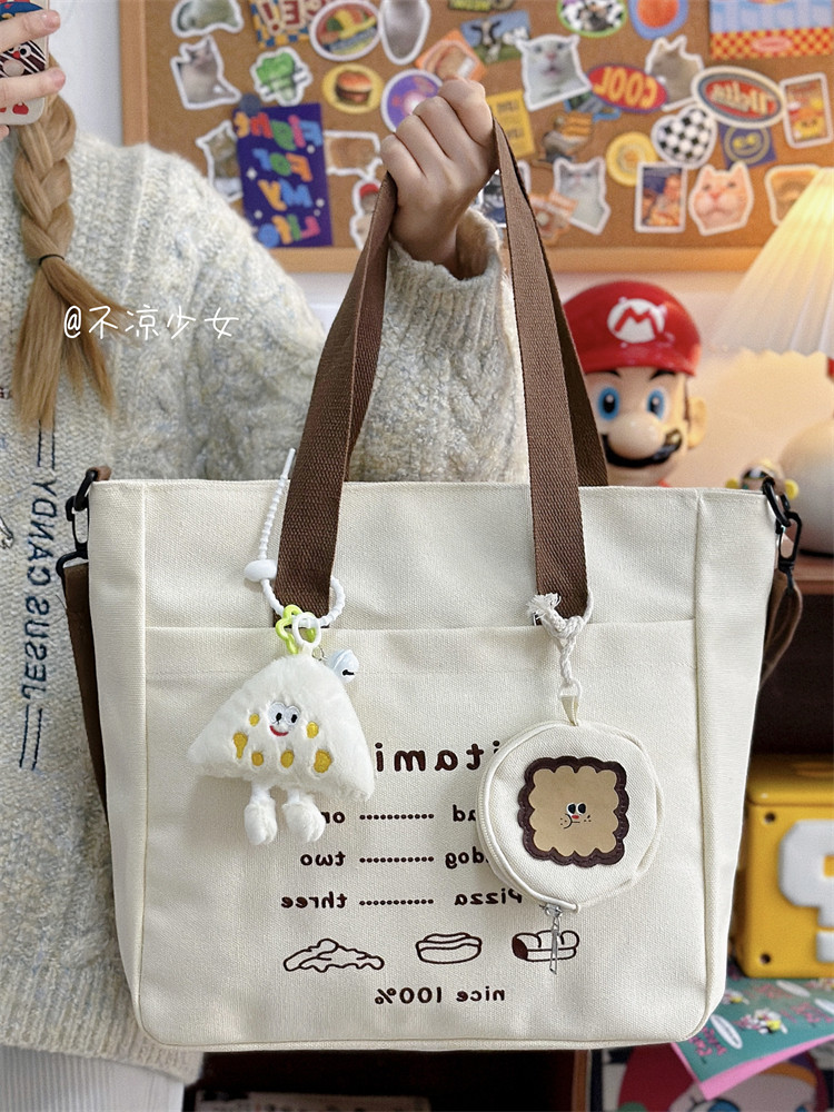 大容量通勤斜挎包日系ins可爱百搭单肩托特包学生上课补习帆布包