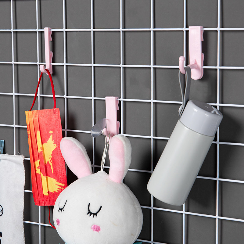 挂钩网格片免钉塑料挂钩铁丝网货架墙面展示挂勾幼儿园收纳免打孔