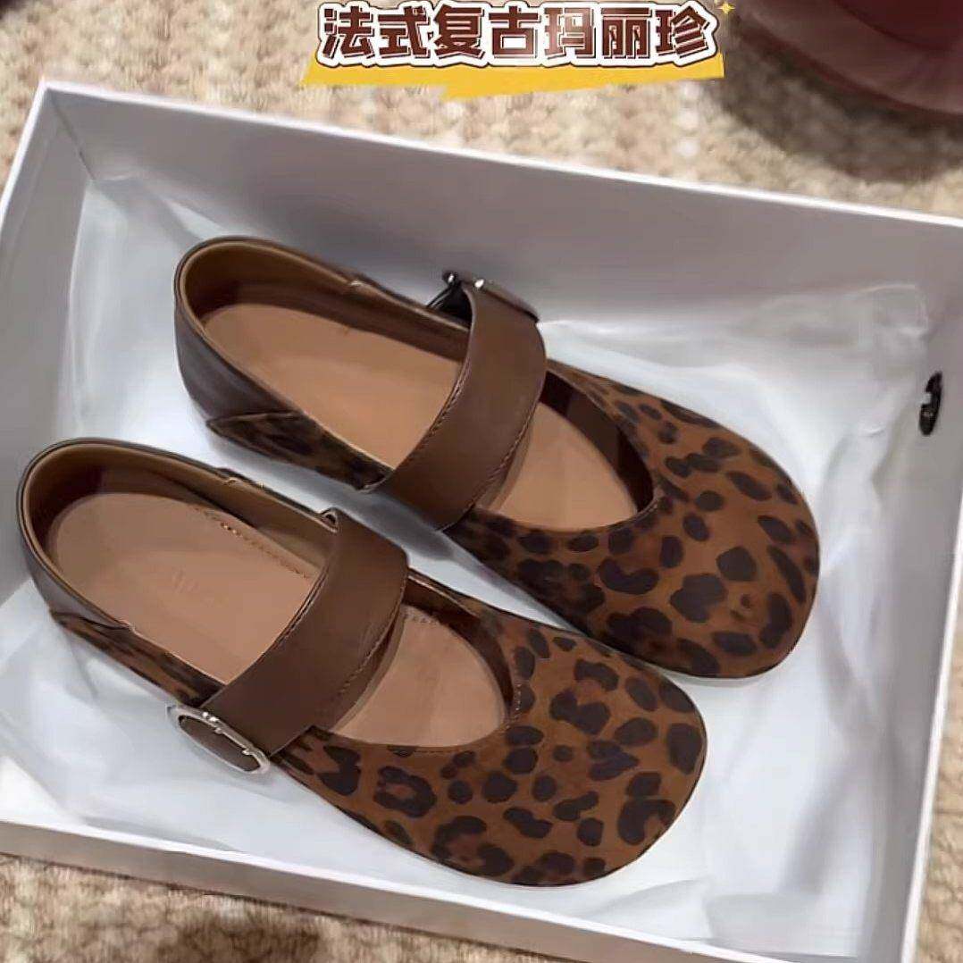 韩版一字带豹纹玛丽珍鞋女2026春秋新款复古内增高软底浅口单鞋