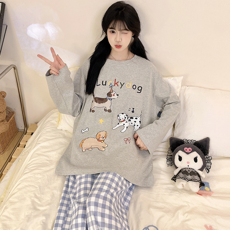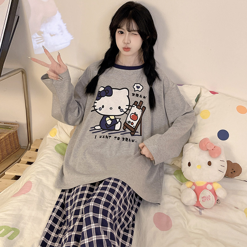 纯棉睡衣女款2026年新款春装套装高级感小猫大码可外穿的家居服女