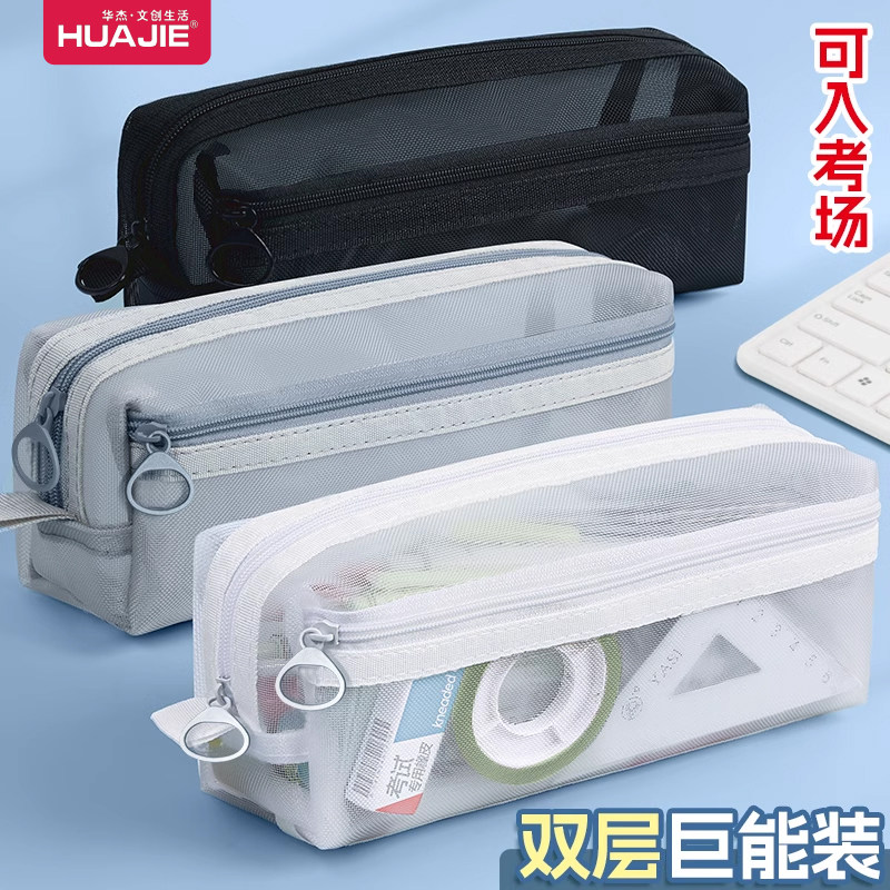 311线报网描述:透明网纱笔袋,学生用,大容量可入考场