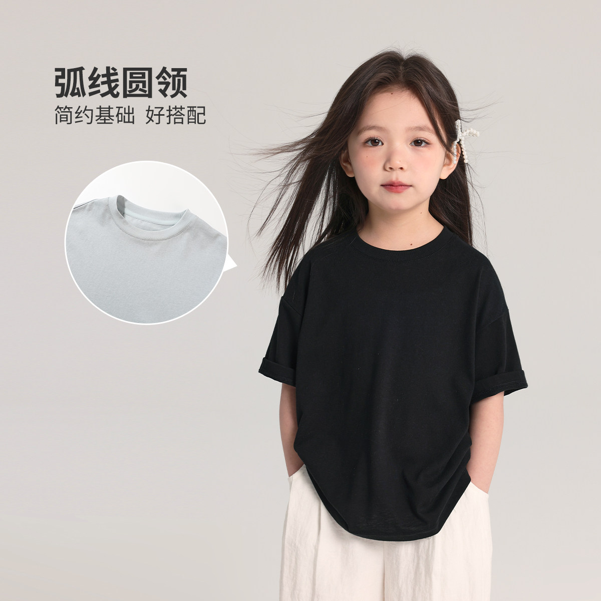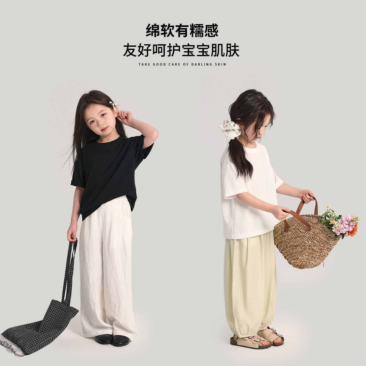 布丁哈鲁童装春装女童洋气上衣2026春夏新款儿童百搭圆领短袖T恤