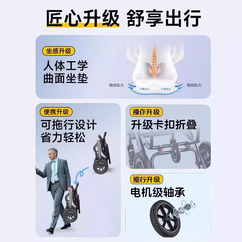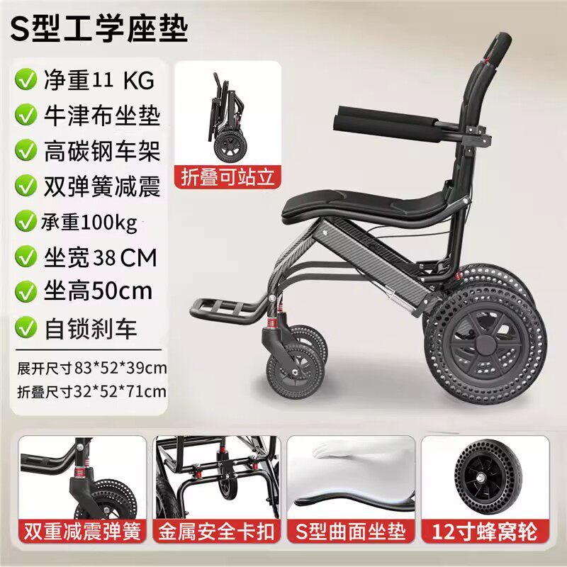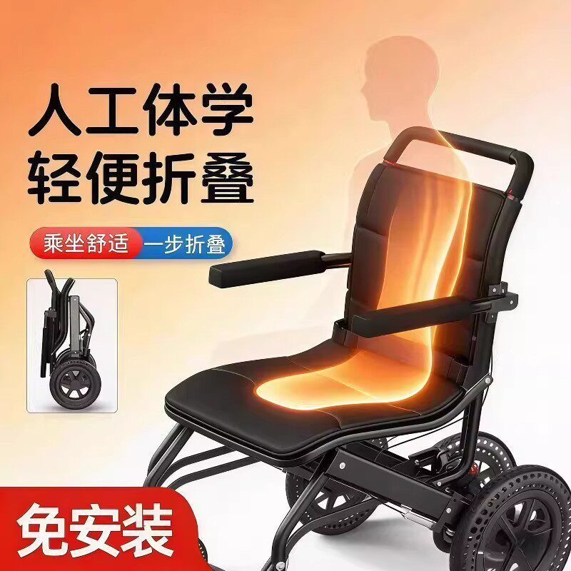 铝合金手动轮椅车折叠轻便小型轮椅老人专用手推车出游代步车便携
