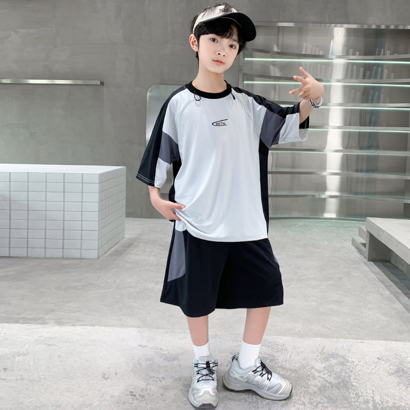 男童夏季冰丝套装2026新款男孩中大童凉感短袖速干儿童夏装篮球服
