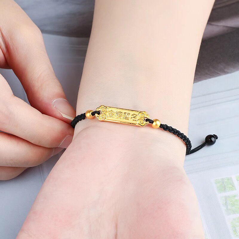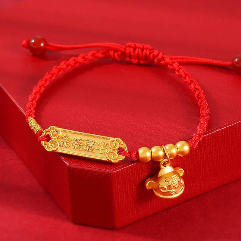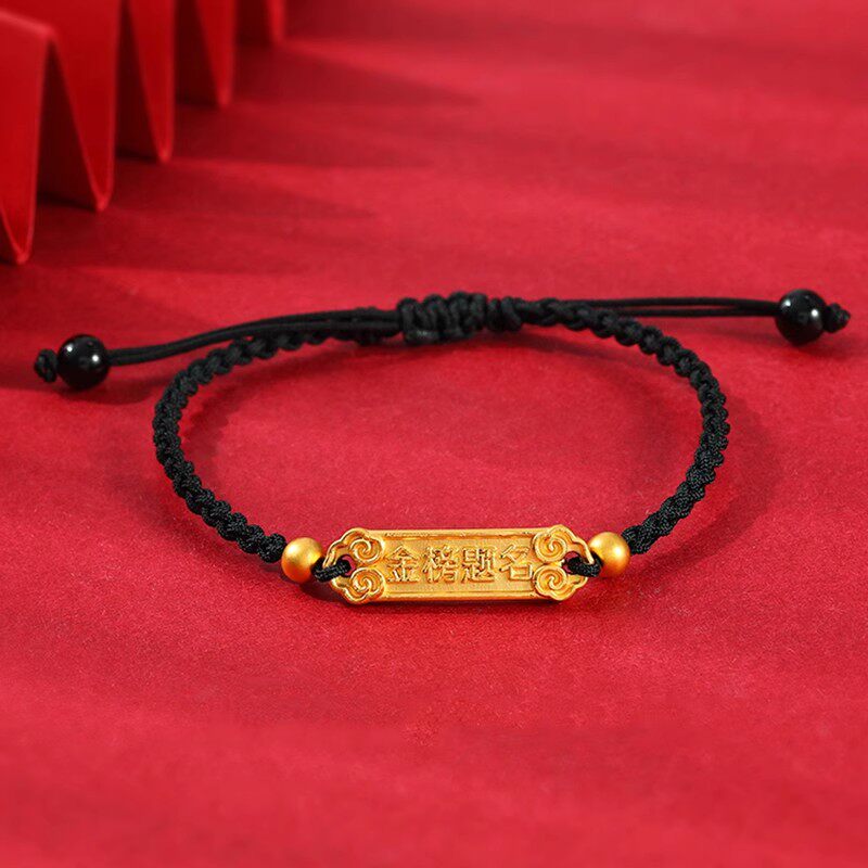 311线报网描述:999足金金榜题名手牌女黄金学生路路通红绳