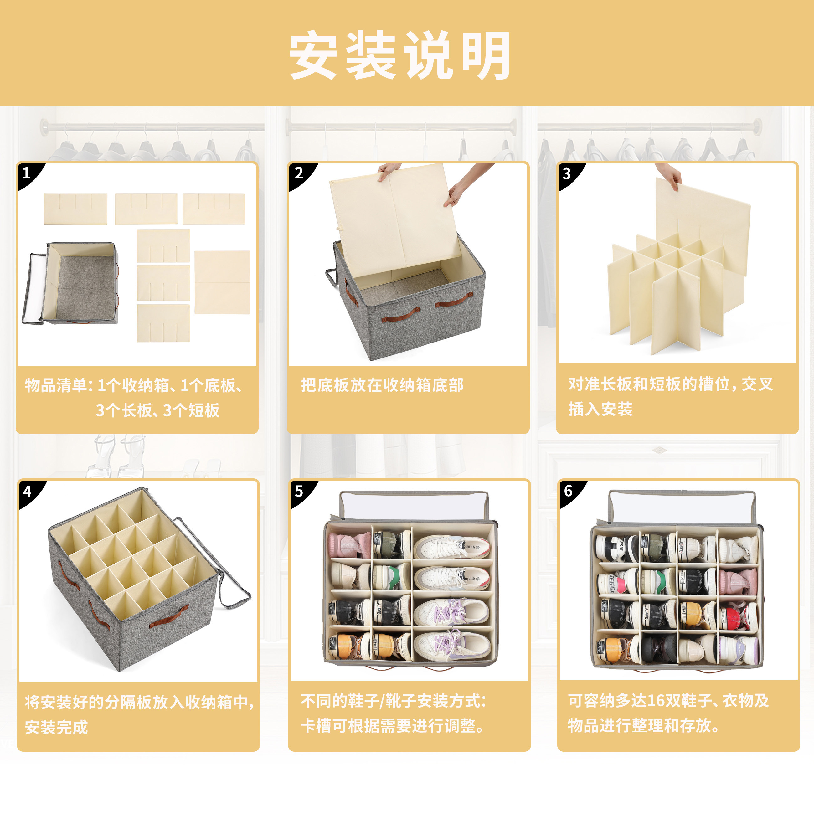 可折叠鞋子收纳箱鞋盒带盖子分隔整理箱pp塑料板可水洗