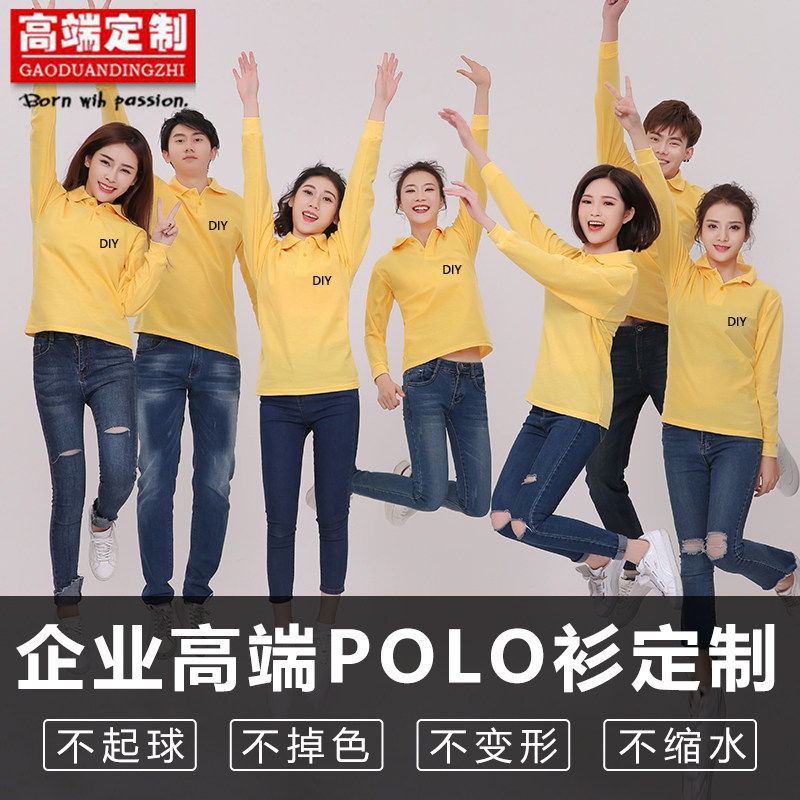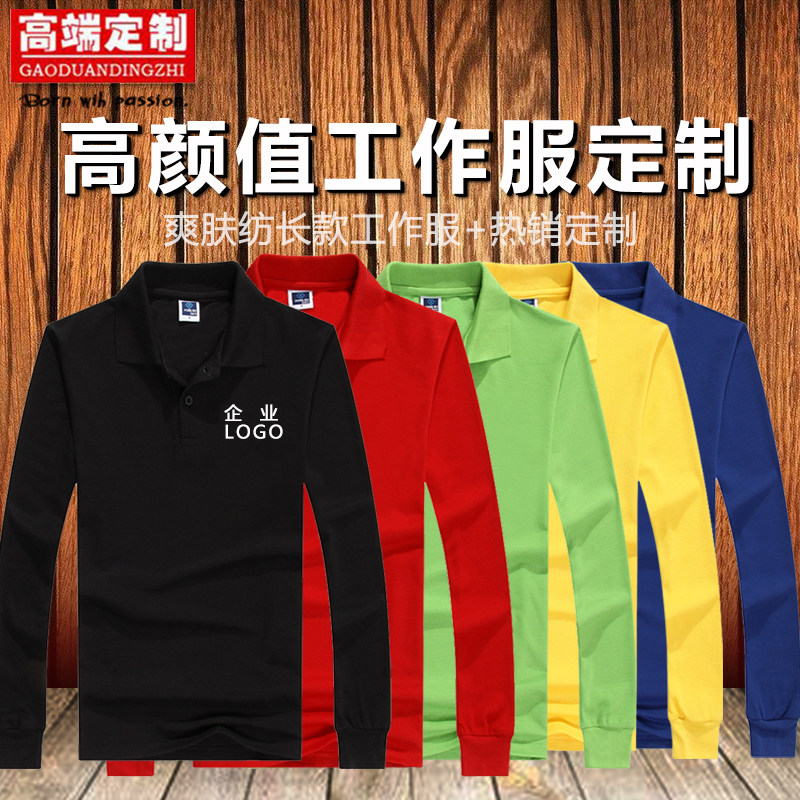 翻领polo衫长袖定制t恤印字logo订制纯棉企业工作服广告衫diy衣服