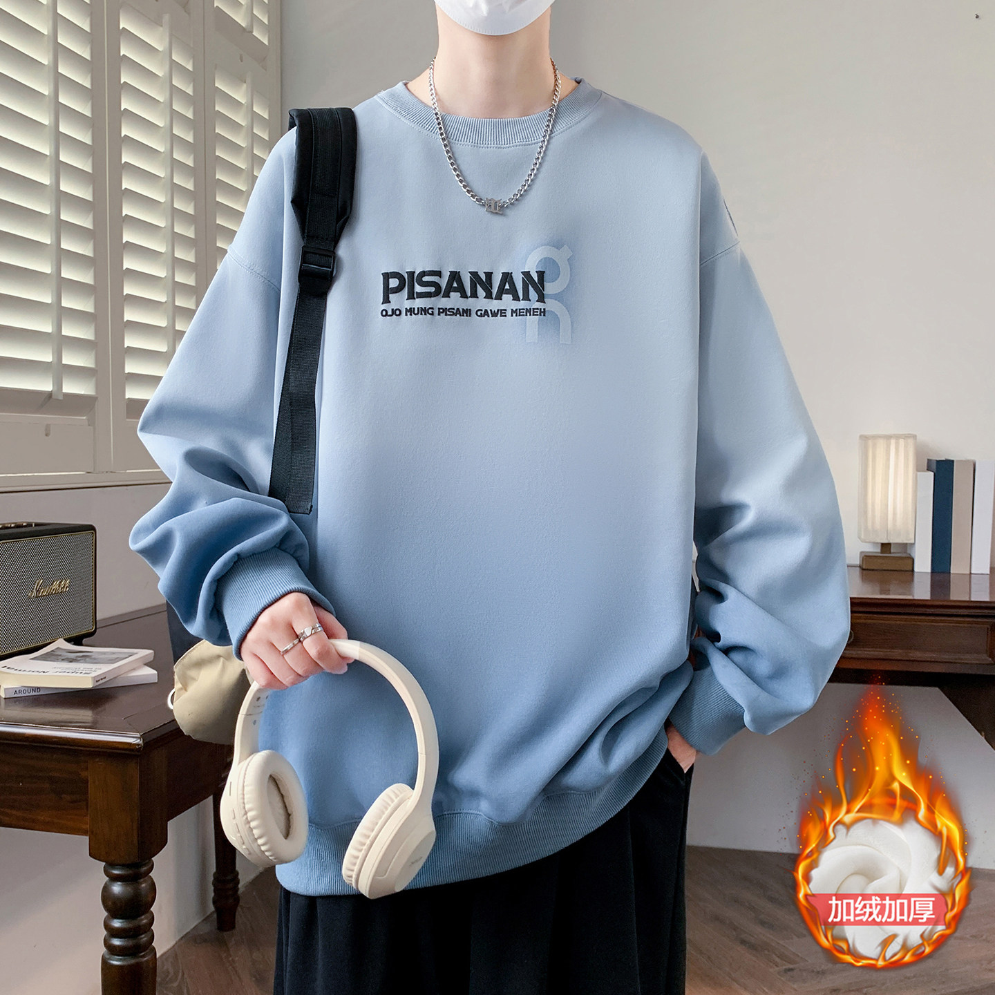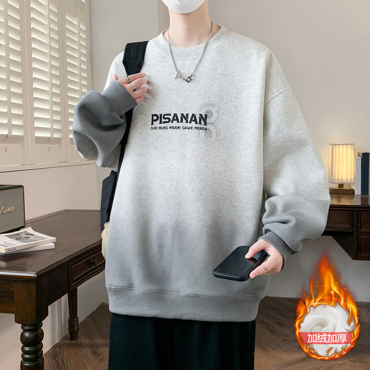 青少年秋冬款加绒加厚卫衣男孩初中学生长袖t恤大童打底衫上衣服