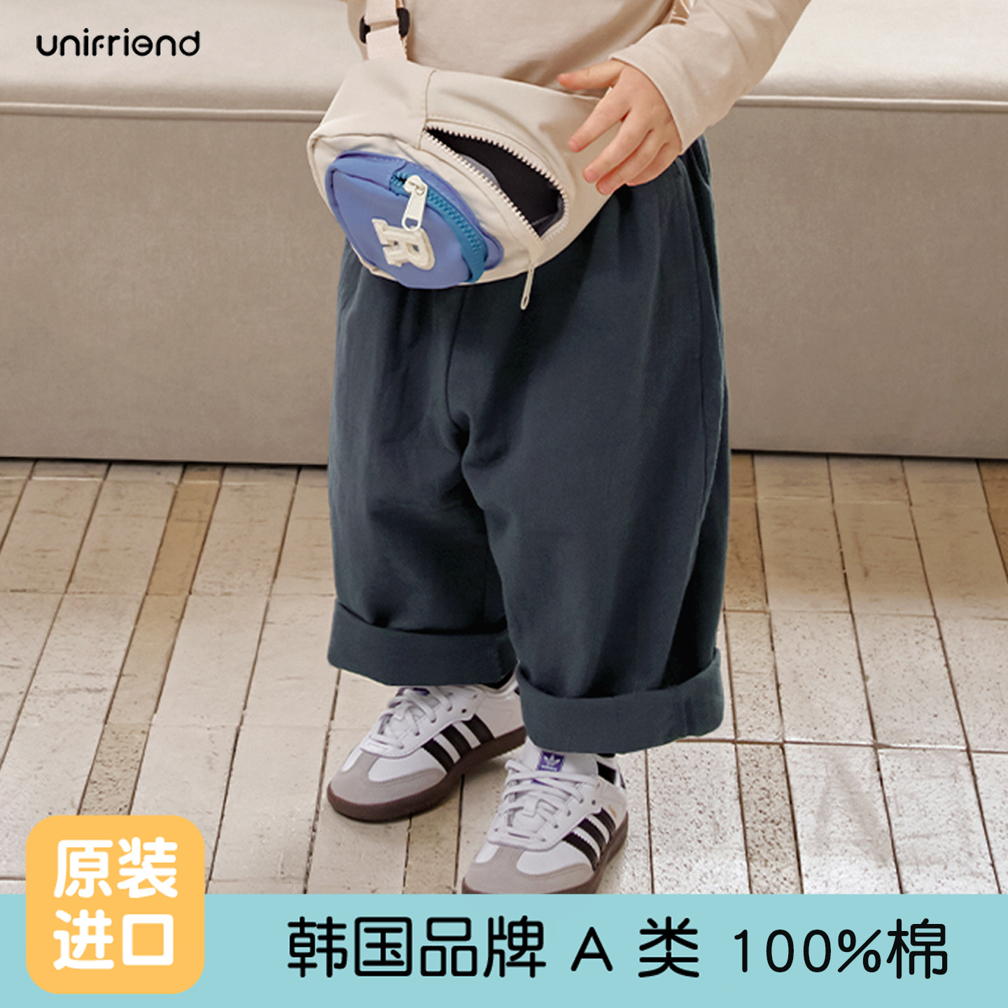 unifriend26年儿童春夏薄款裤子纯棉男童女童防蚊裤休闲八分潮流