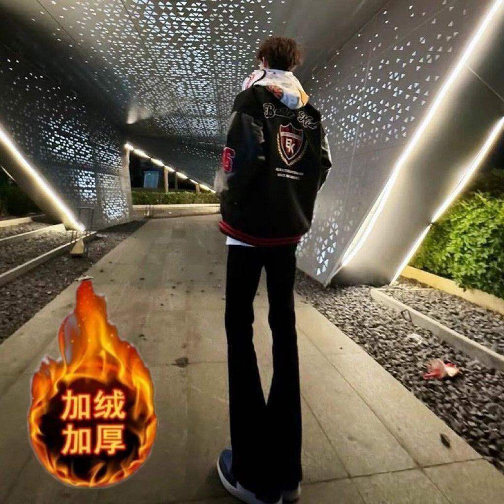 黑色加长微喇牛仔裤高个子新款男款美式高街vibe裤子弯刀微喇裤子