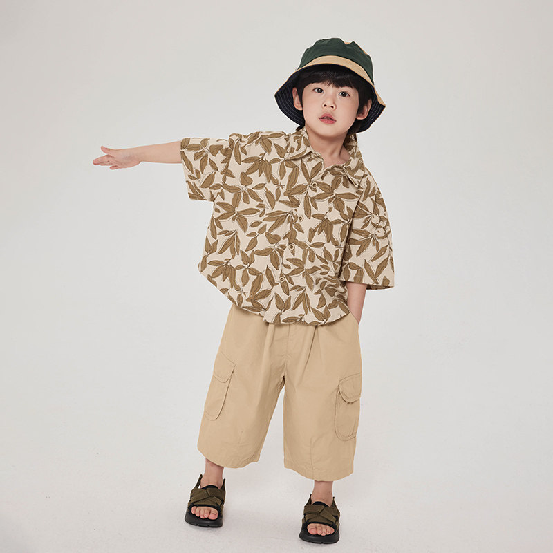 积木城堡 男童衬衫短袖2026夏装新款儿童韩版花衬衣中小童上衣薄