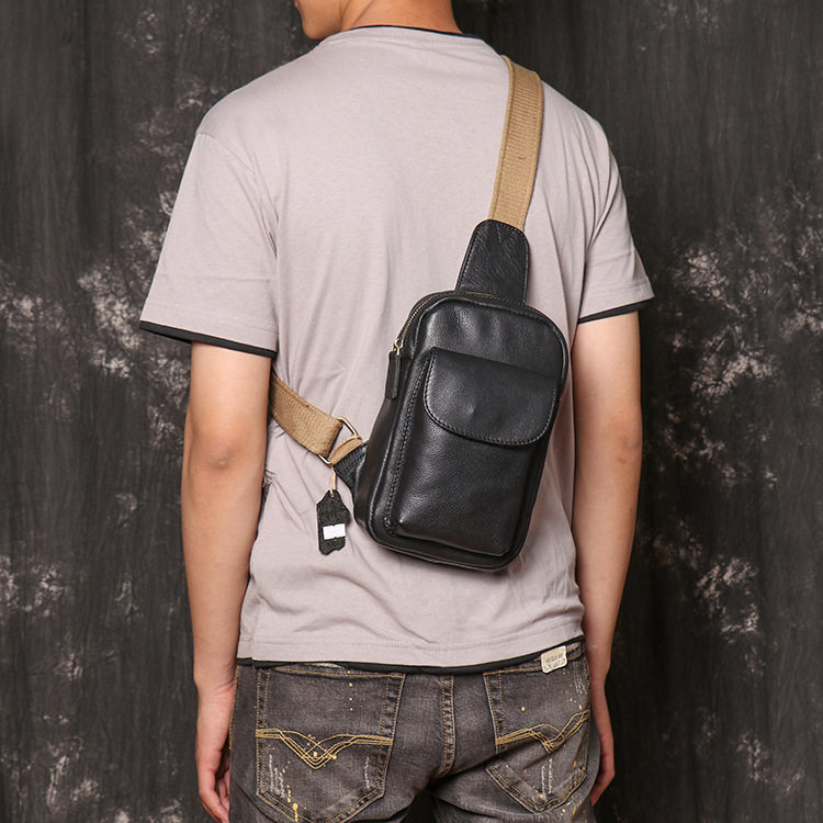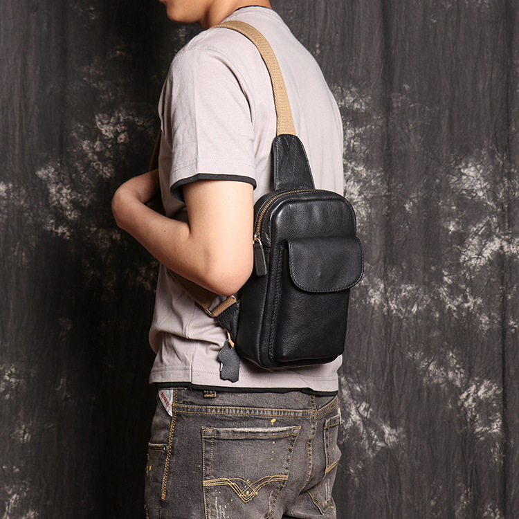 头层牛皮胸包男士多功能手机包真皮小背包宽肩带大容量单肩斜挎包