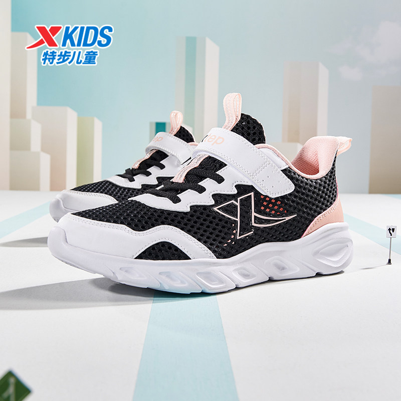 特步童鞋夏季新款儿童魔术贴透气跑步鞋女童软底运动鞋中大童鞋子