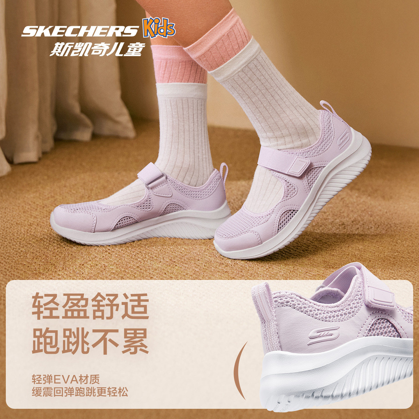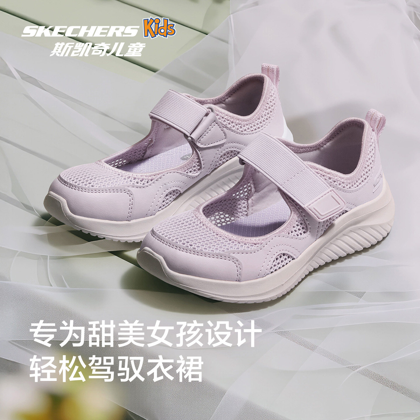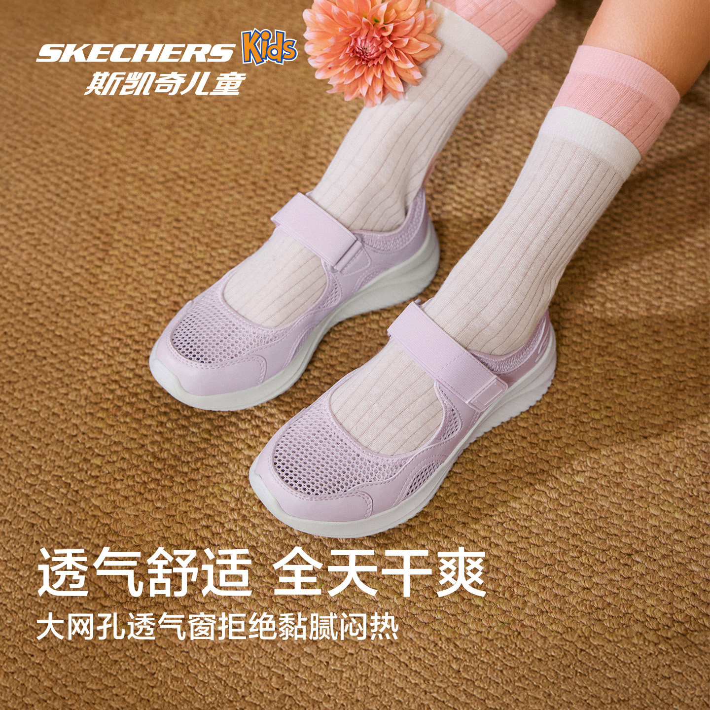 Skechers斯凯奇儿童夏季透气网面轻量舒适运动魔术贴玛丽珍休闲鞋