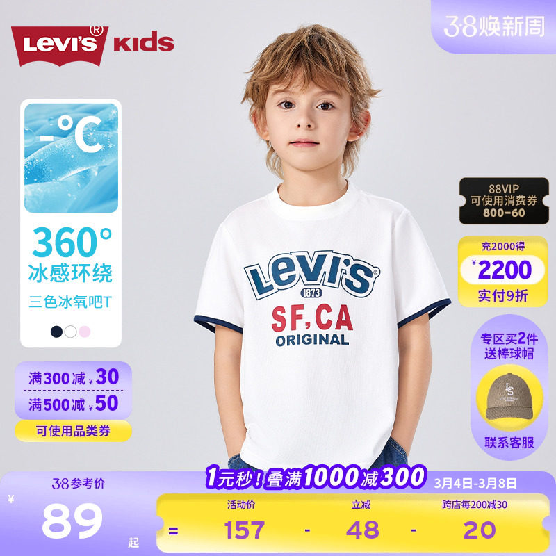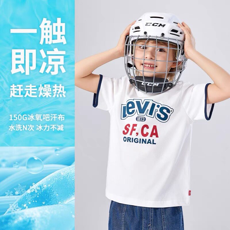 【凉感透气】Levis李维斯儿童男童短袖T恤2025夏季新款运动上衣女