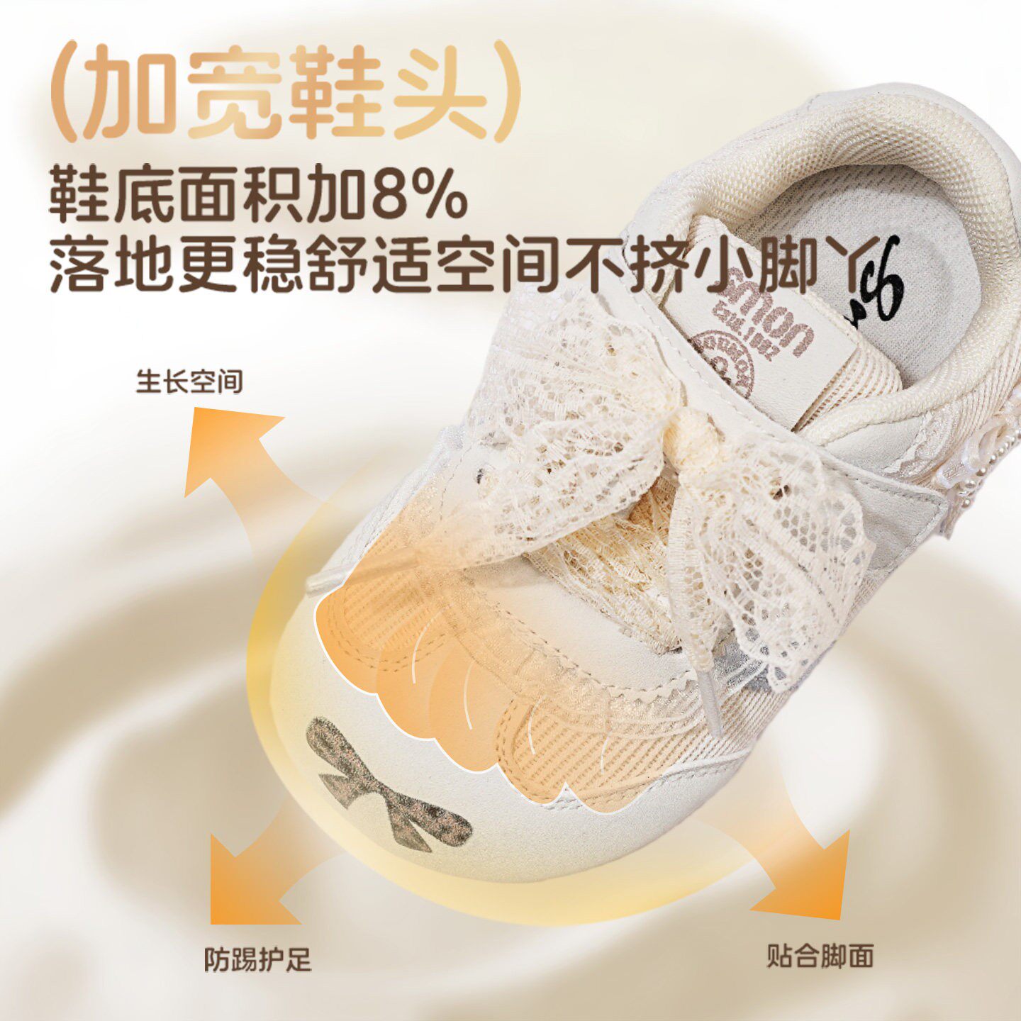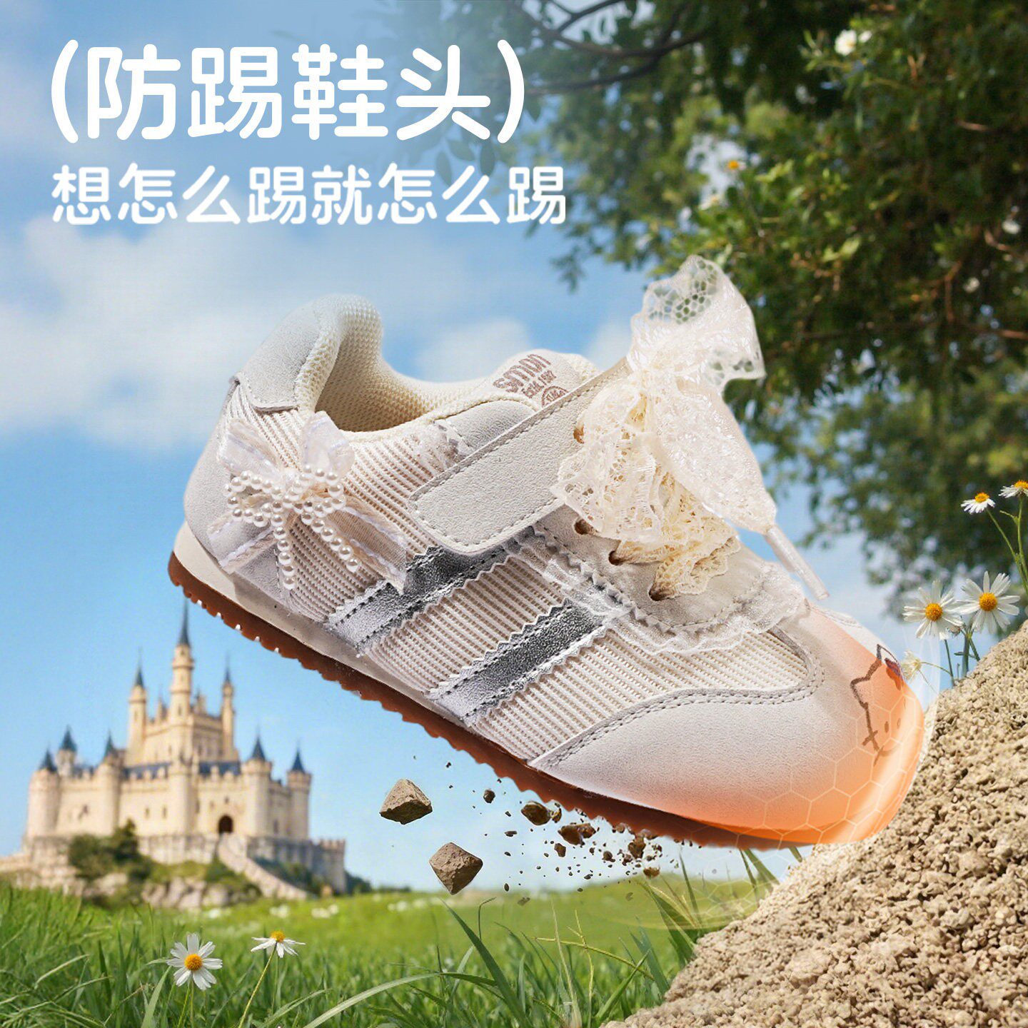 儿童运动鞋阿甘鞋女款蕾丝网布蝴蝶结公主鞋春款女小童百搭休闲鞋