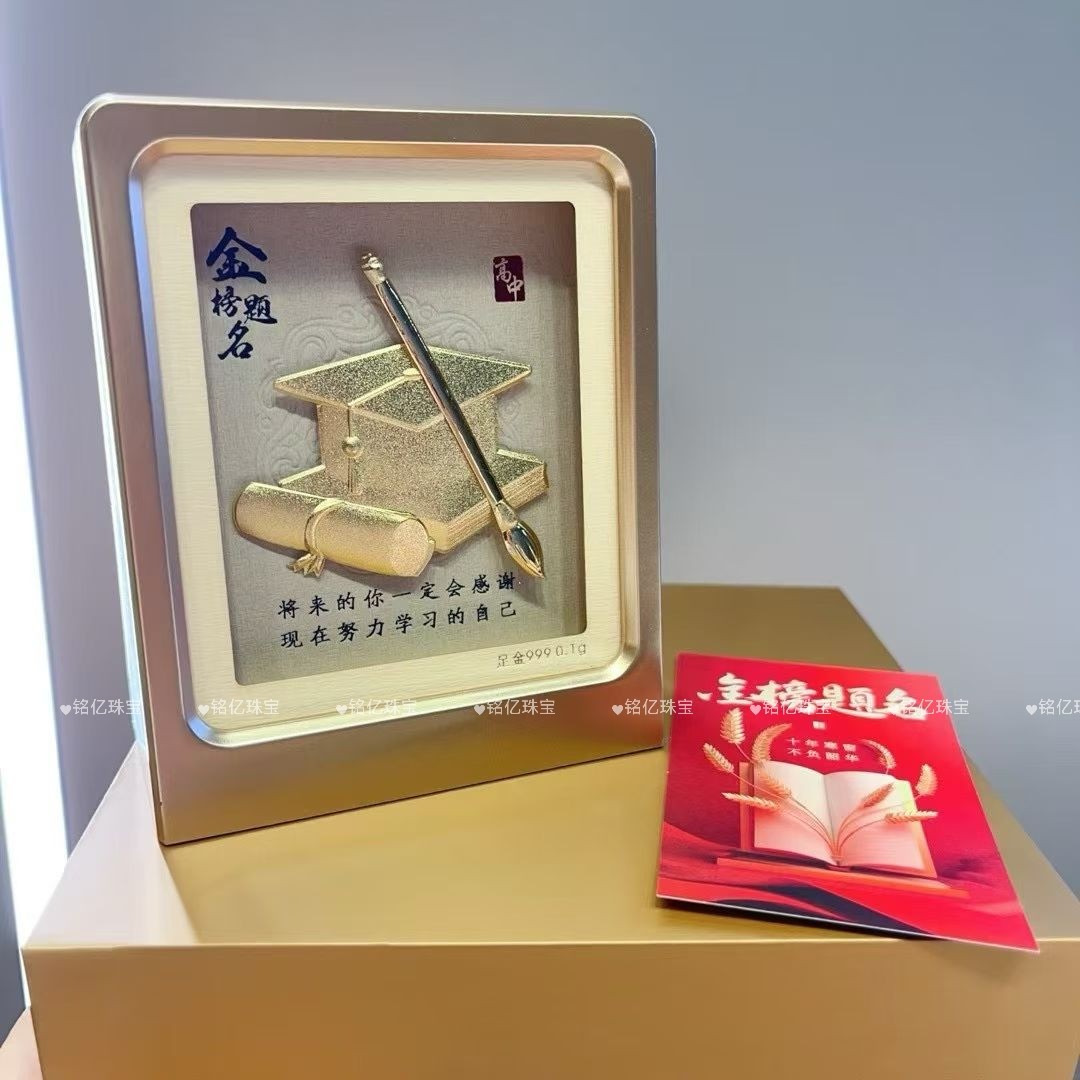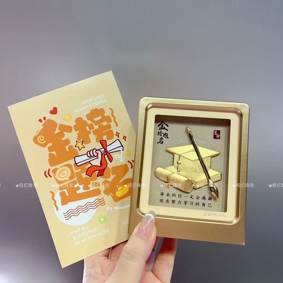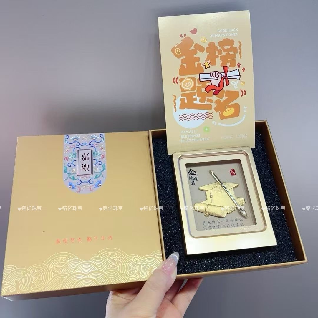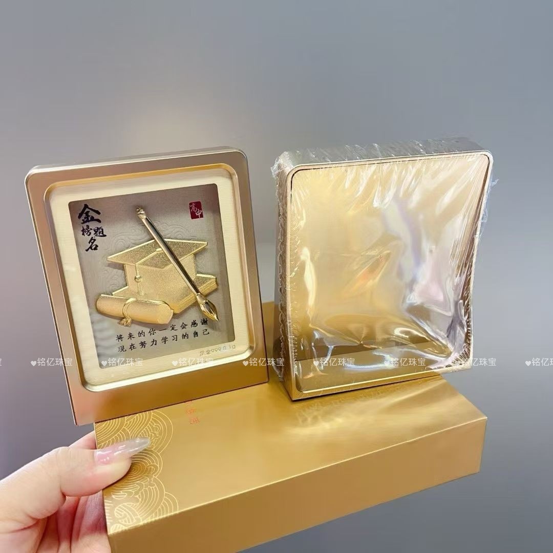 足金999黄金金榜题名0.1克桌面摆件礼盒送学生考生礼物