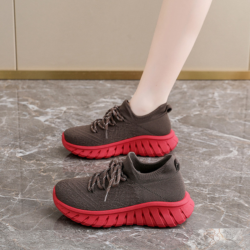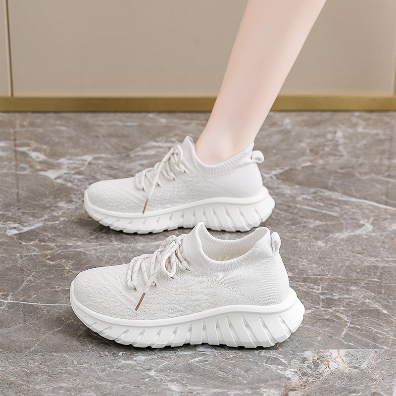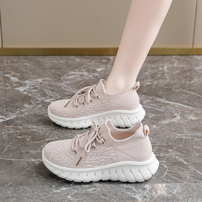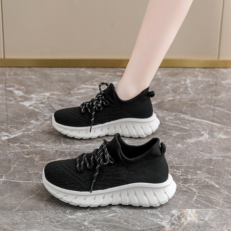 黑色厚底运动鞋女透气网面轻便软底休闲鞋踩屎感不累脚防滑工作鞋