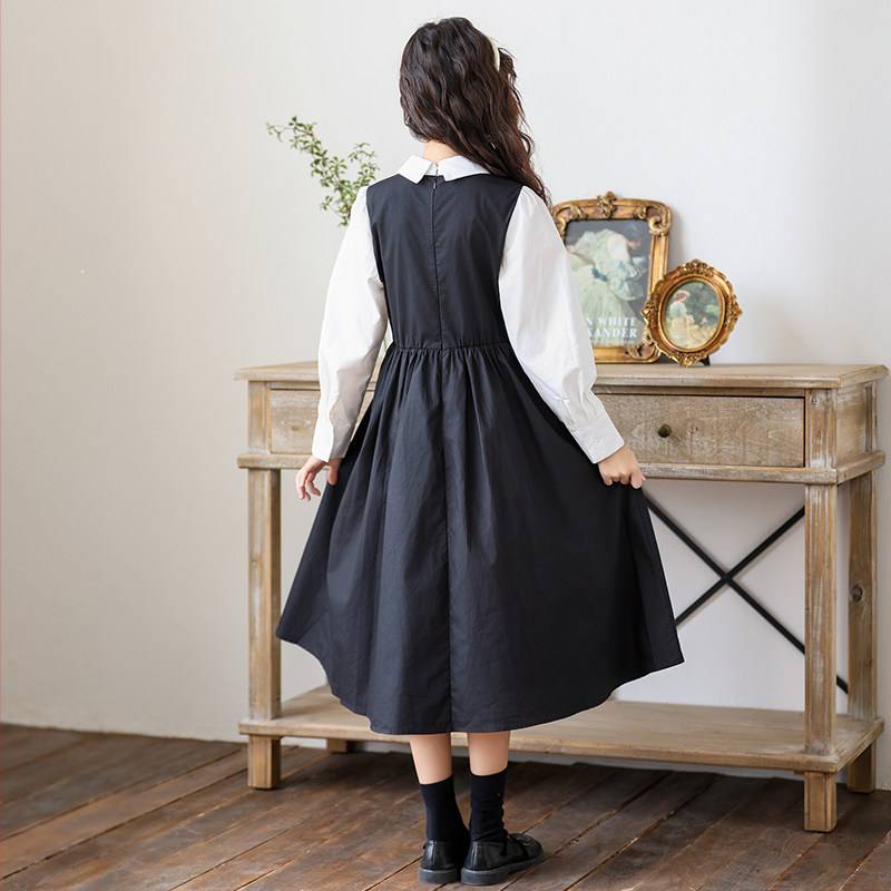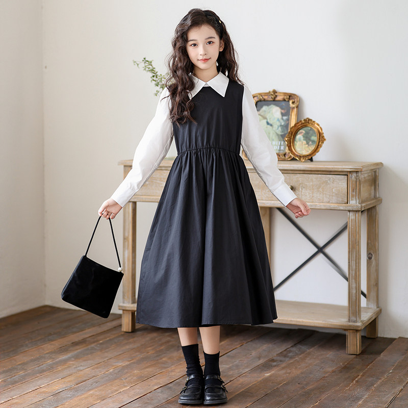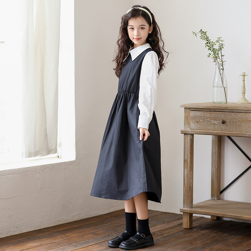 中大女童连衣裙春秋装2026新款洋气学院风长裙假两件长袖裙子亲子