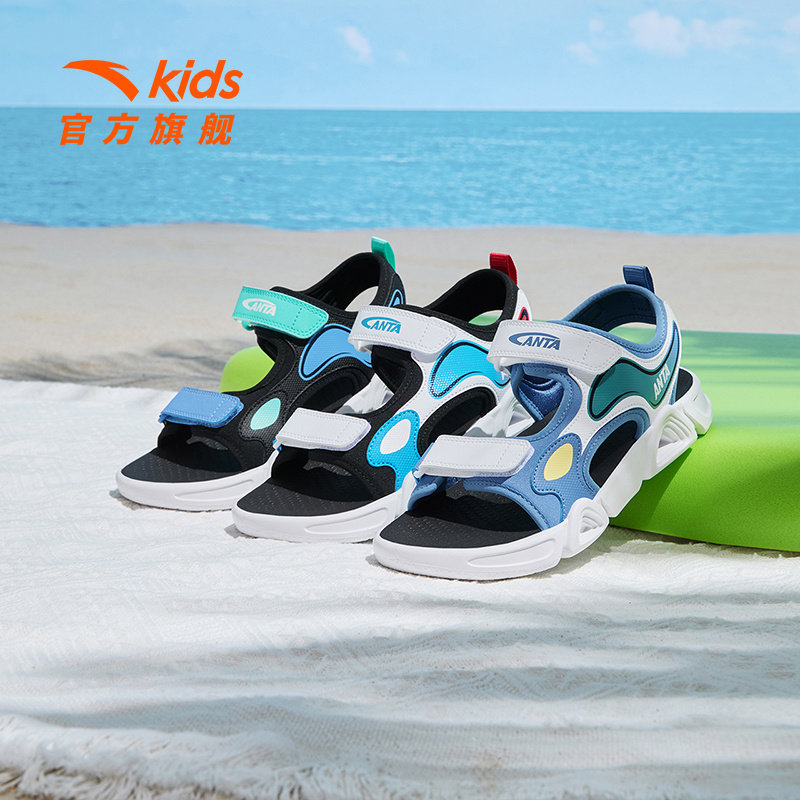 安踏童鞋男童凉鞋中大童男孩运动凉鞋防滑露趾宝宝女童女孩沙滩鞋