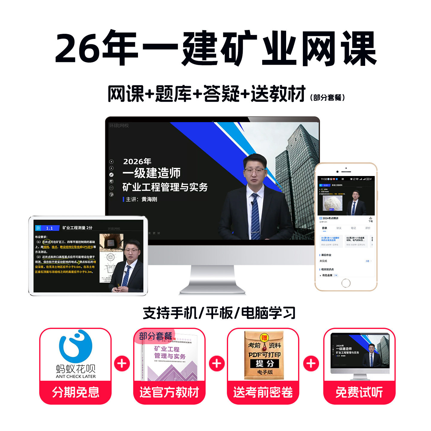 环球网校2026年一级建造师矿业工程网课视频一建教材26课程黄海刚