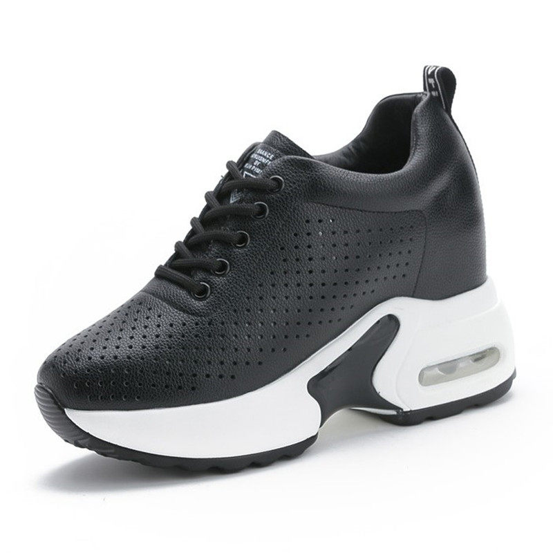 真皮小白鞋春夏镂空透气厚底10cm内增高女鞋夏天配裙子的休闲鞋子