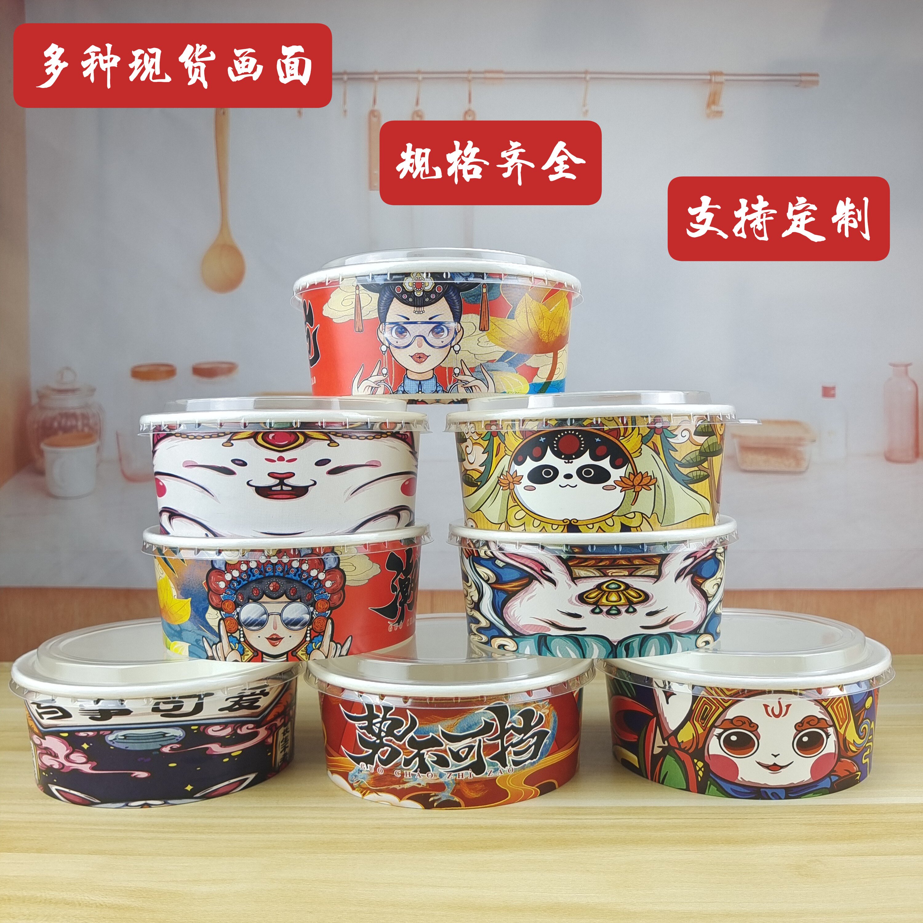 牛皮纸打包盒一次性纸碗圆形外卖烤肉饭沙拉碗国潮餐盒整箱可降解