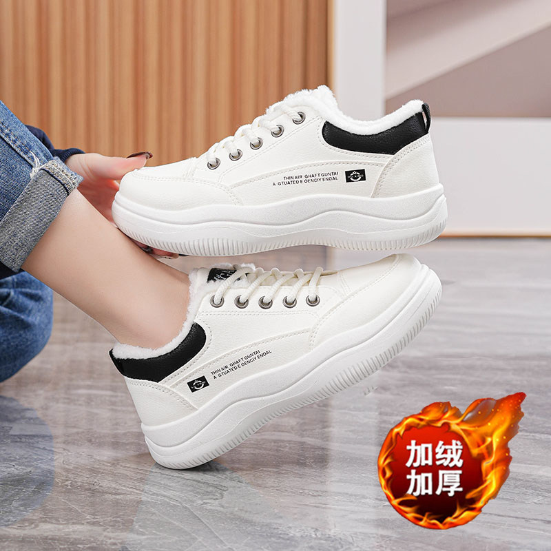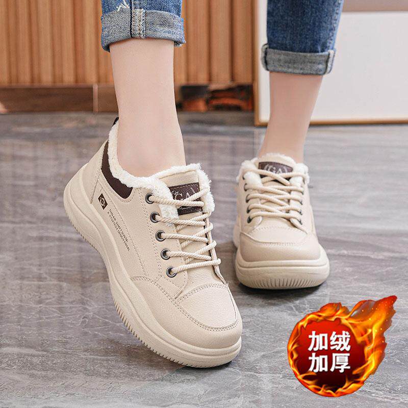 2025冬季新款回力女鞋加绒运动棉鞋保暖皮面百搭厚底防滑防水白色