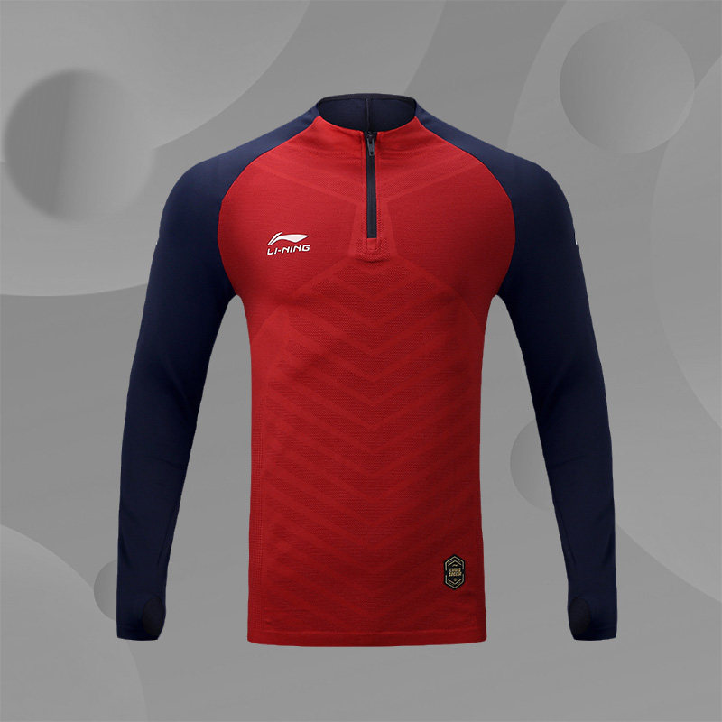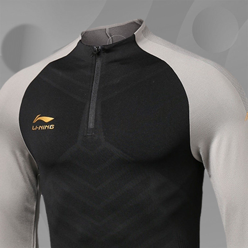李宁运动长袖T恤男士秋季薄款套头衫新款半拉链足球训练服ATLR033