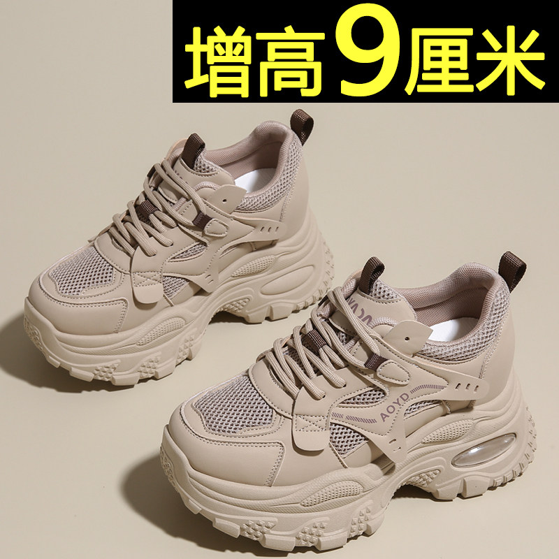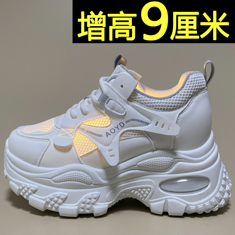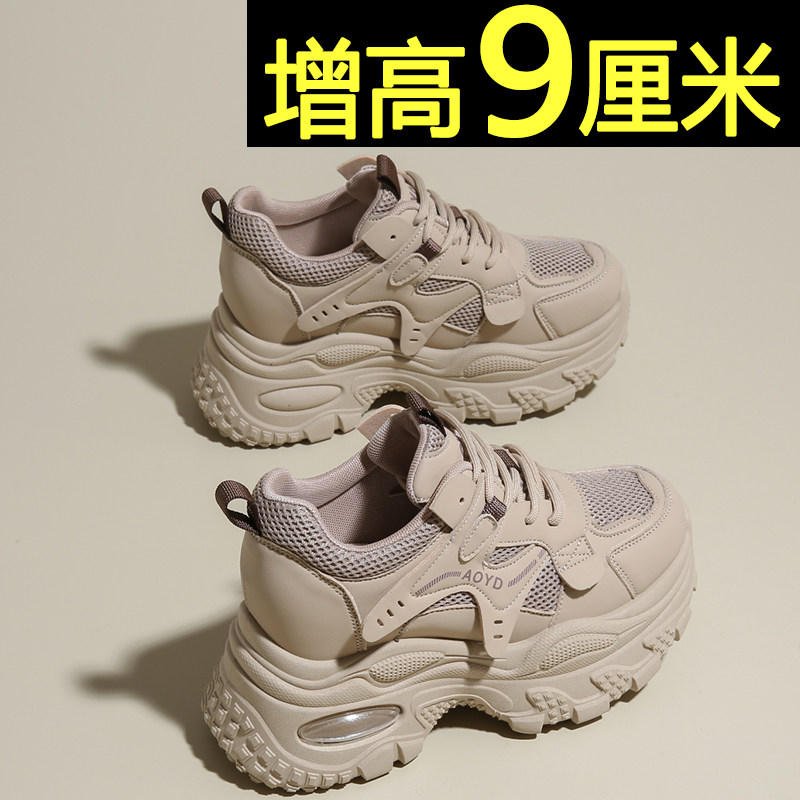 9cm内增高小白鞋女2026新款夏季透气网面松糕休闲运动厚底老爹鞋