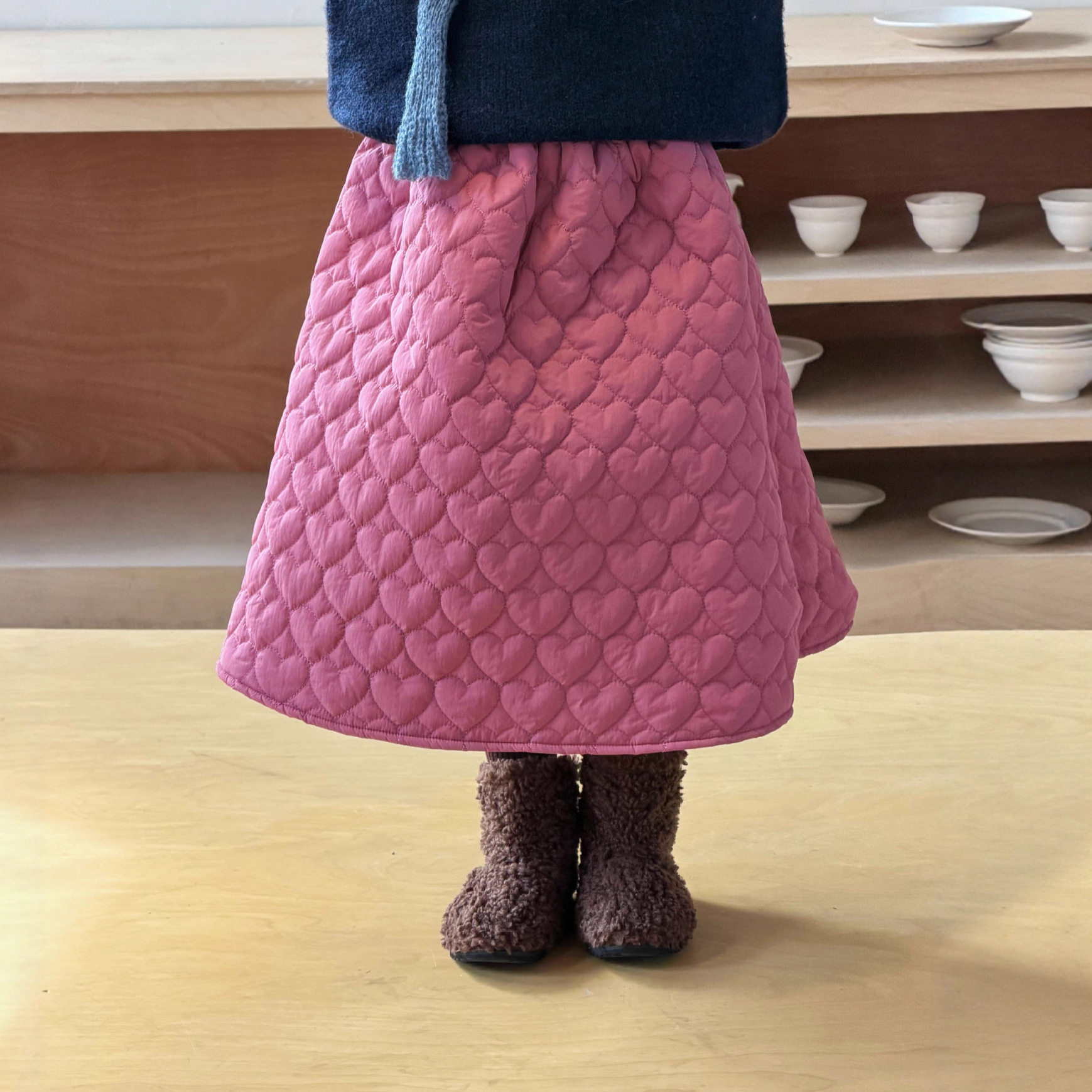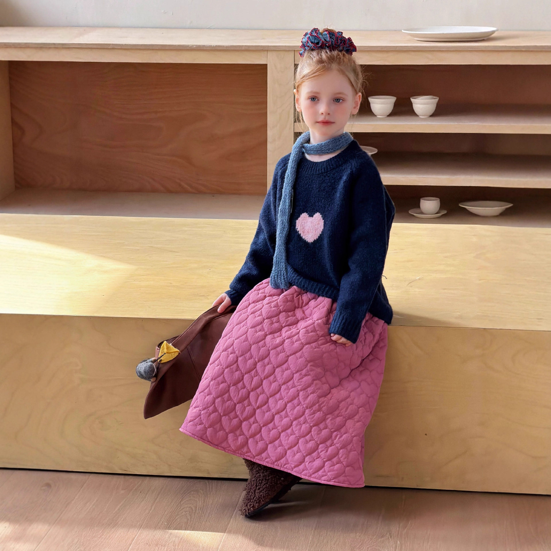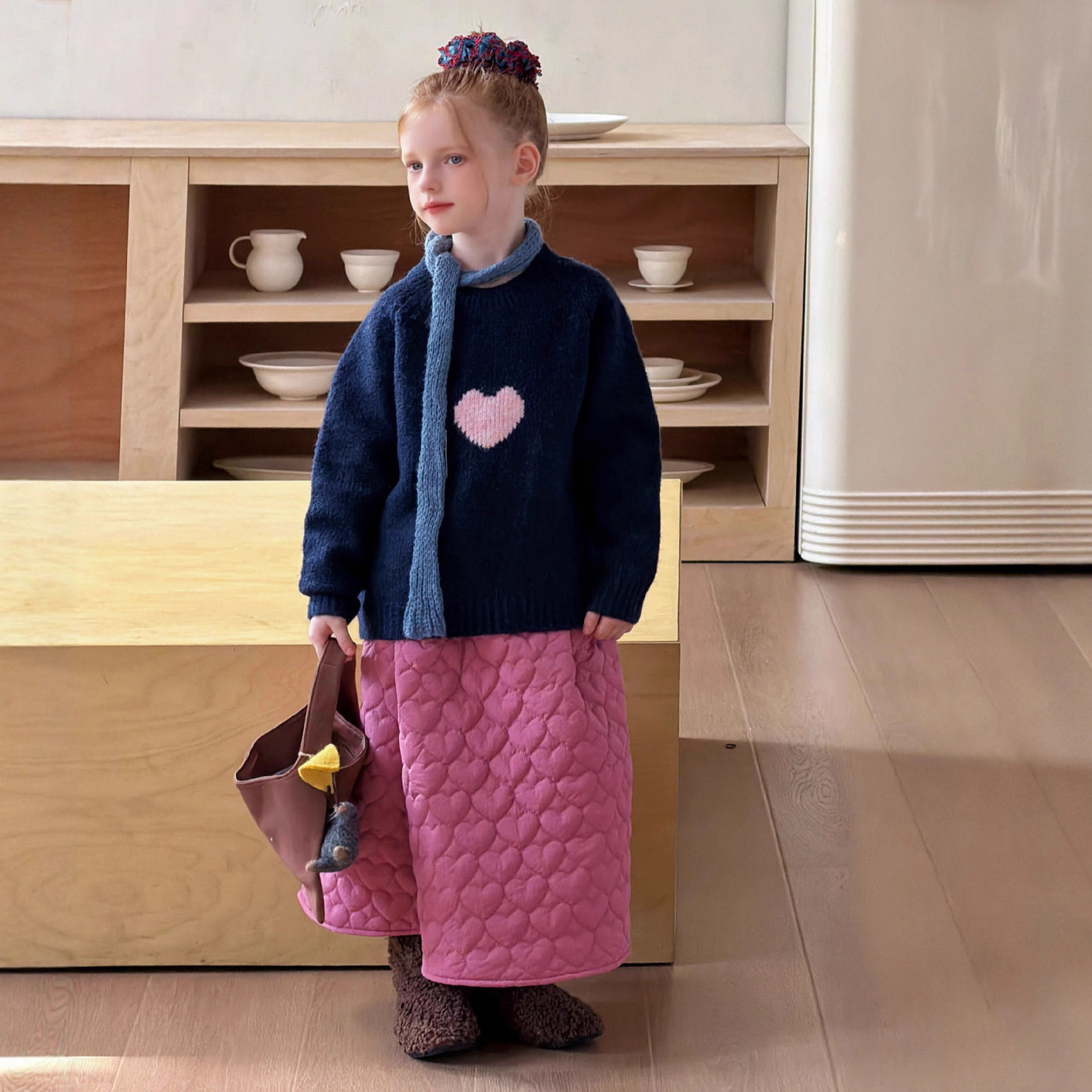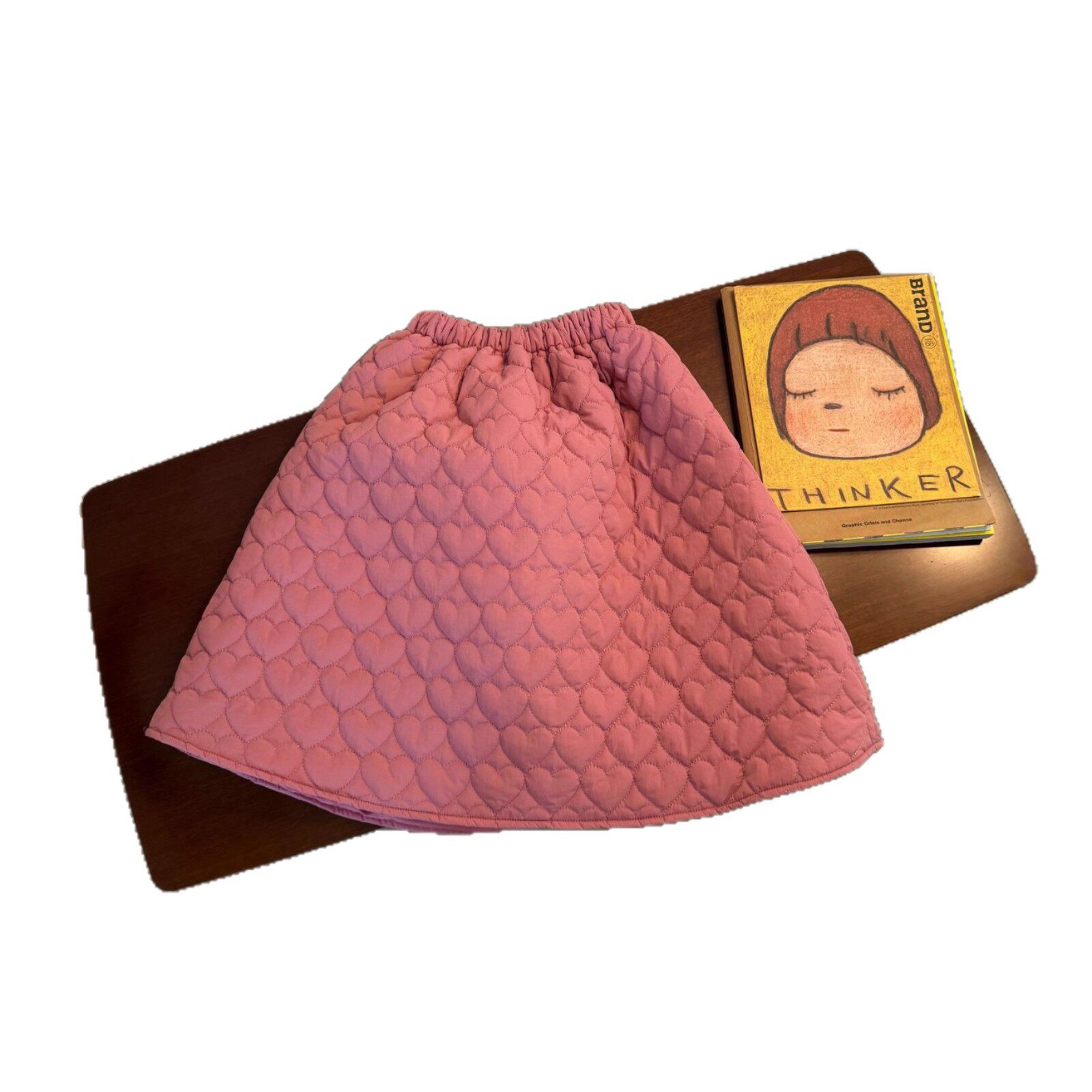 女童绗棉半身裙2025秋冬新款韩版儿童桃粉色爱心半裙宝宝夹棉裙子